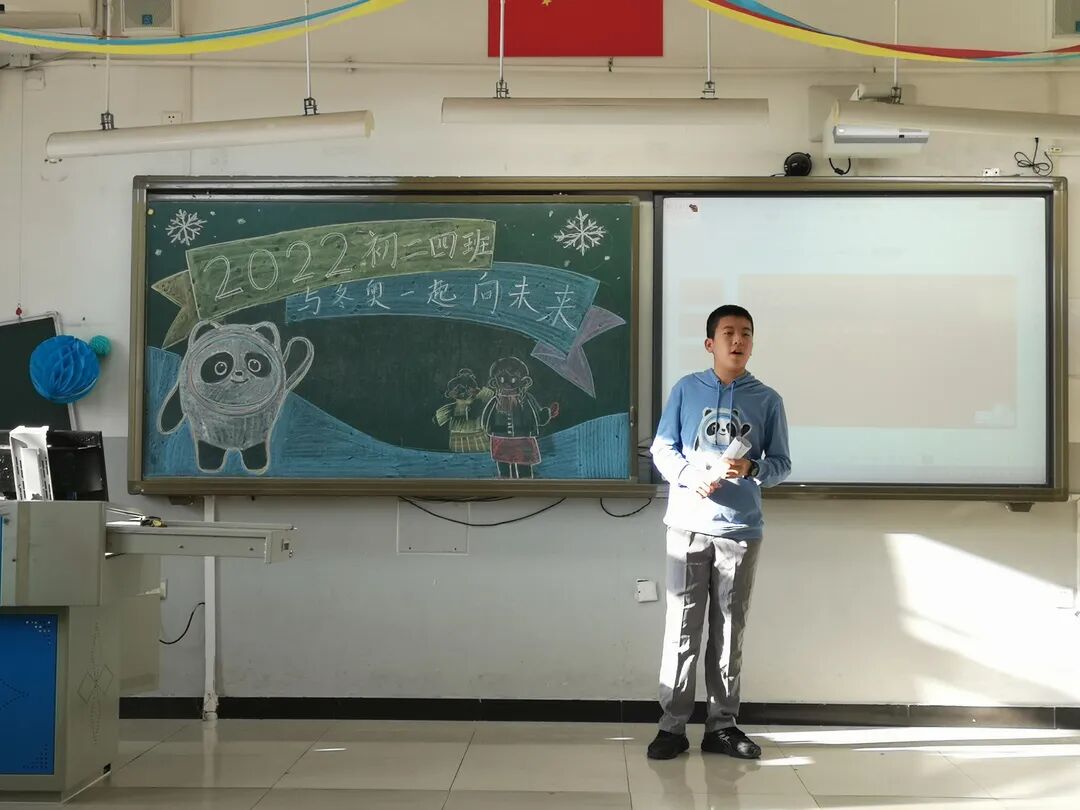 展演的节目还有乐亭诗社的诗朗诵《当冬奥与北京相遇》,初三团员的经典诵读《沁园春·雪》,初二年级舞蹈精编《一起向未来》,以及由我校“凤凰之音”合唱团带来的压轴表演——《四季的问候》与《一起向未来》。