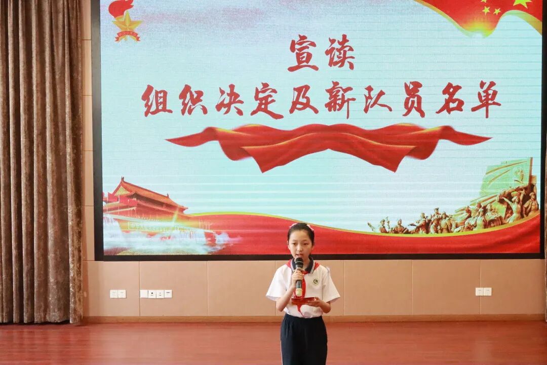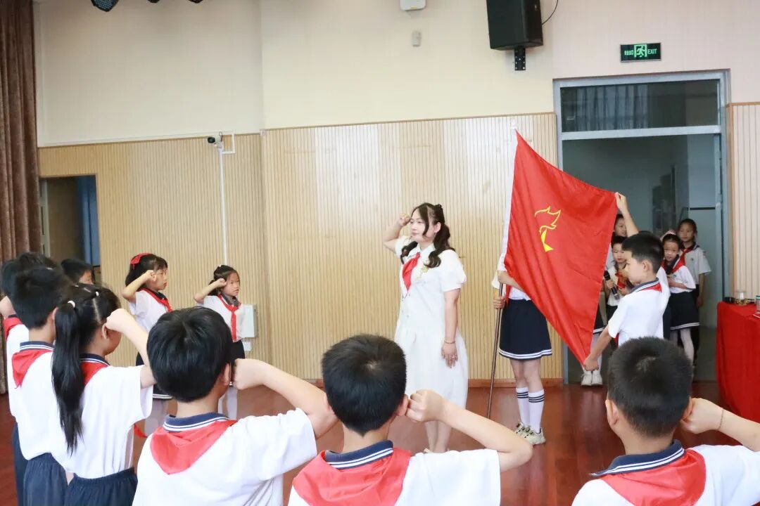 学校党支部副书记朱斐代表党组织向新队员们表示热烈祝贺,并致以殷切嘱托,勉励队员们珍惜少先队员身份,让红色基因在求知、探索中传承,在点滴成长中闪光,努力成长为堪当民族复兴重任的栋梁之材。
