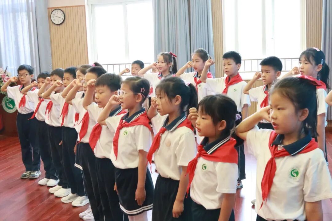 二年级组建新中队:二(1)赤竹中队、二(2)初荷中队、二(3)青葵中队、二(4)葫芦中队;共137名同学光荣成为少先队员。
