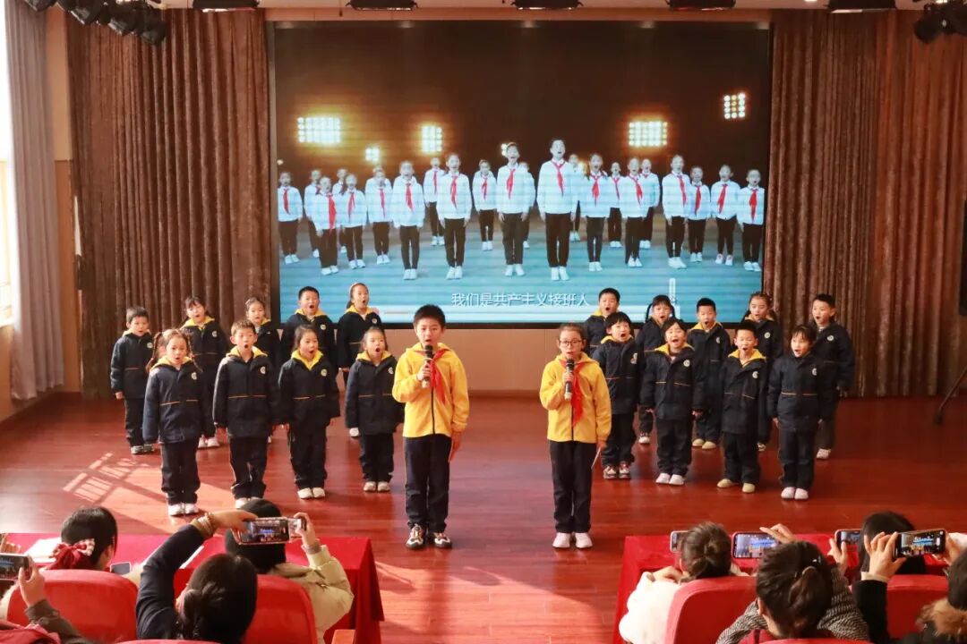 听党的话、跟党走,党是太阳我是花,我们沐浴在党温暖的阳光下。学校少工委副主任、党支部副书记朱斐为一年级小月芽们送上了悠悠祝福和殷殷期盼。希望一年级的小月芽们做爱党、爱国、爱人民的新时代有志少年;做勤学善思、见多识广的新时代博学少年;做修身立德、品学兼优的新时代美德少年;做强健体魄、朝气蓬勃的新时代快乐少年,早日成为一名光荣的少先队员,绽放更加绚烂的光彩。