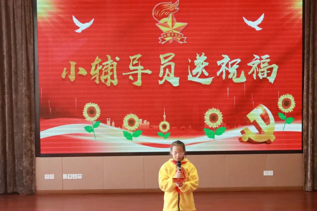 一年级小月芽的成长离不开哥哥姐姐的帮助和辅导。小辅导员刘语宸带来了对弟弟妹妹的祝福和期许,她鼓励弟弟妹妹们要快乐学习、健康成长,争取更多的奖章。