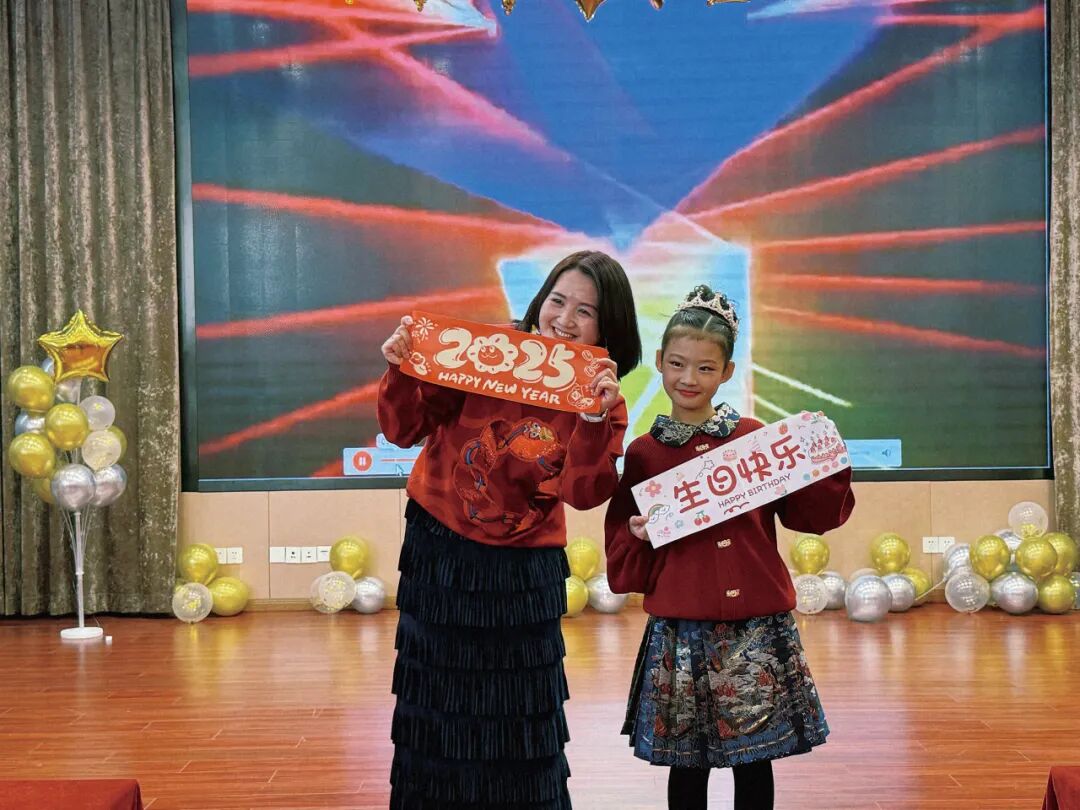 张副校长真诚地表达了对家长们无私支持的感激之情,尤其是那些为活动倾注心血、精心布置的家长志愿者们,他们的付出让活动更加完美。接着,他为即将迎来十岁生日的小月芽们,送上了满怀期许与温情的祝福:希望小月芽们能在未来的日子里,保持好奇心,勇敢探索未知的世界;学会坚持与努力,面对困难不退缩;更要珍惜身边的友谊与亲情,让爱与温暖伴随成长的每一步。