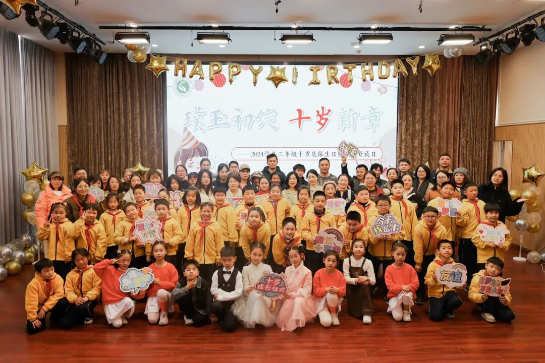 在2024年的最后一天,月浦中心校的三年级全体师生、家长欢聚一堂,举行“璞玉初绽 十岁新章——三年级十岁集体生日暨家长开放日活动”,共同庆祝小月芽们的十岁生日,迎接新一年的到来。