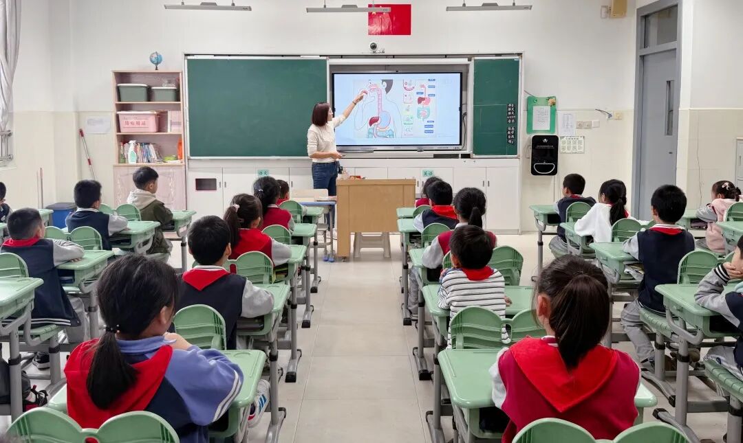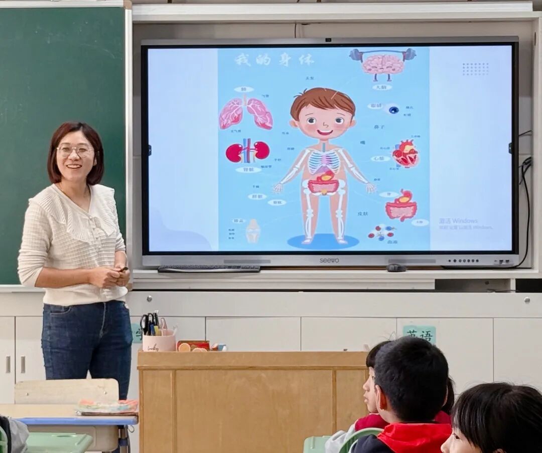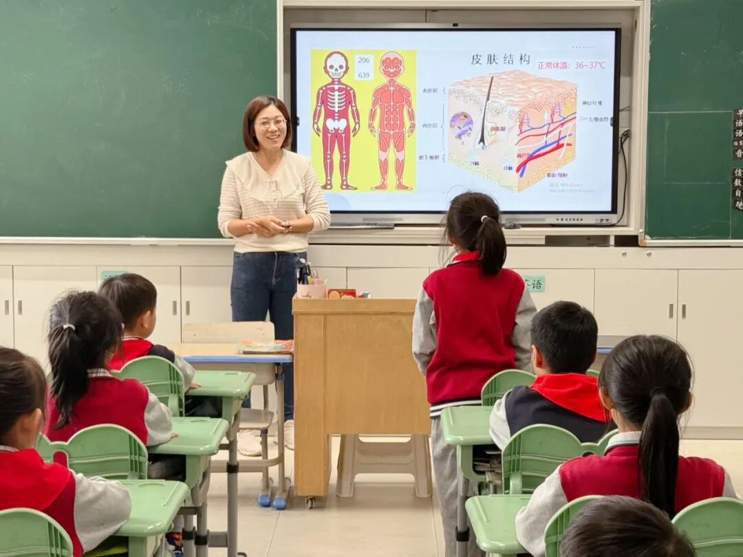 窦妈妈首先展示了一幅生动的卡通人体结构图,瞬间激发了学生的好奇心,引导他们深入思考“我们的身体究竟由哪些部分组成”。课堂上,学生们纷纷踊跃发言,气氛热烈非凡。