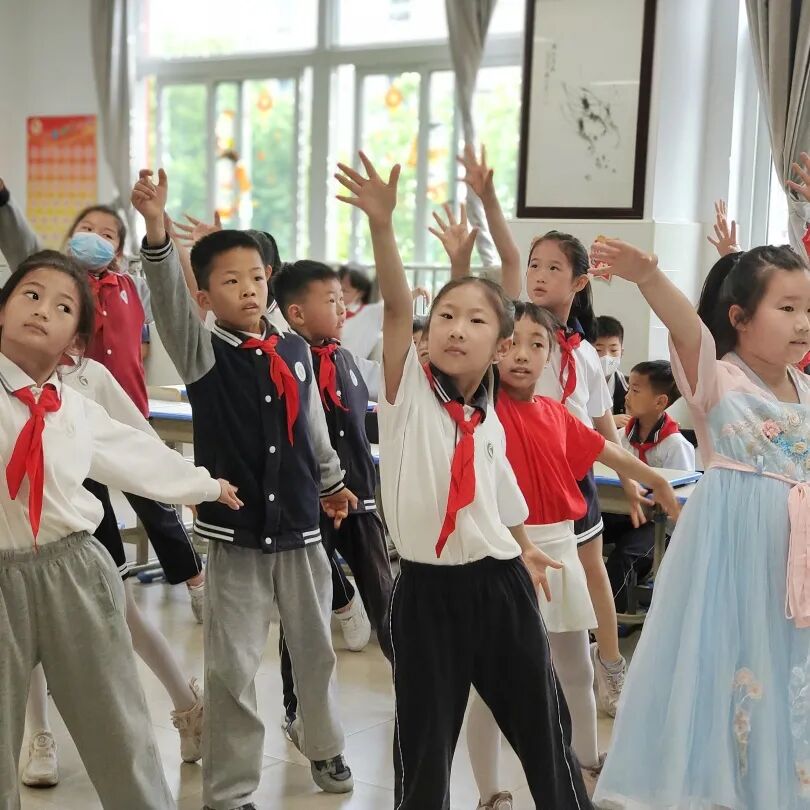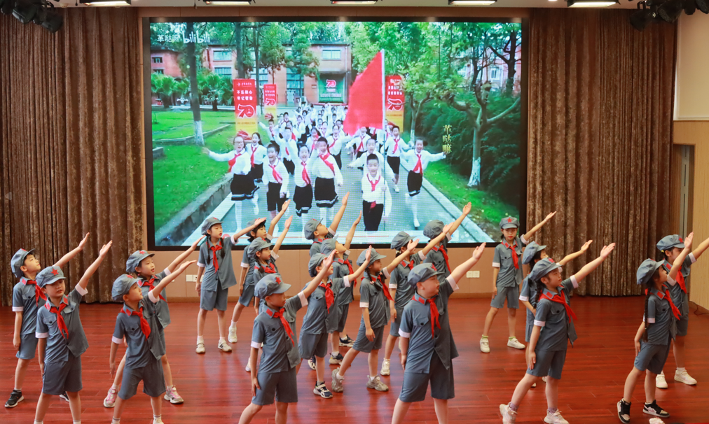 看!队旗高高飘扬,星星火炬闪耀着金光。他们是新时代的雏鹰,是中华民族的新一代。