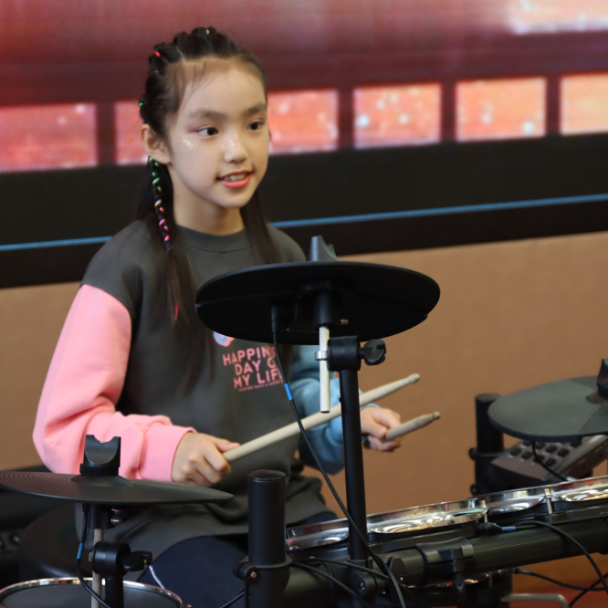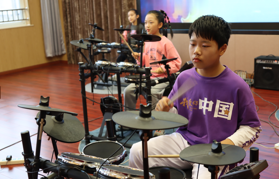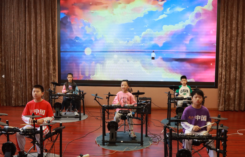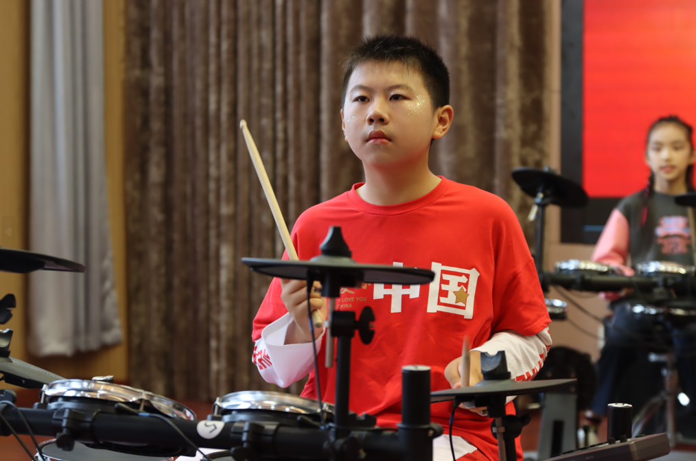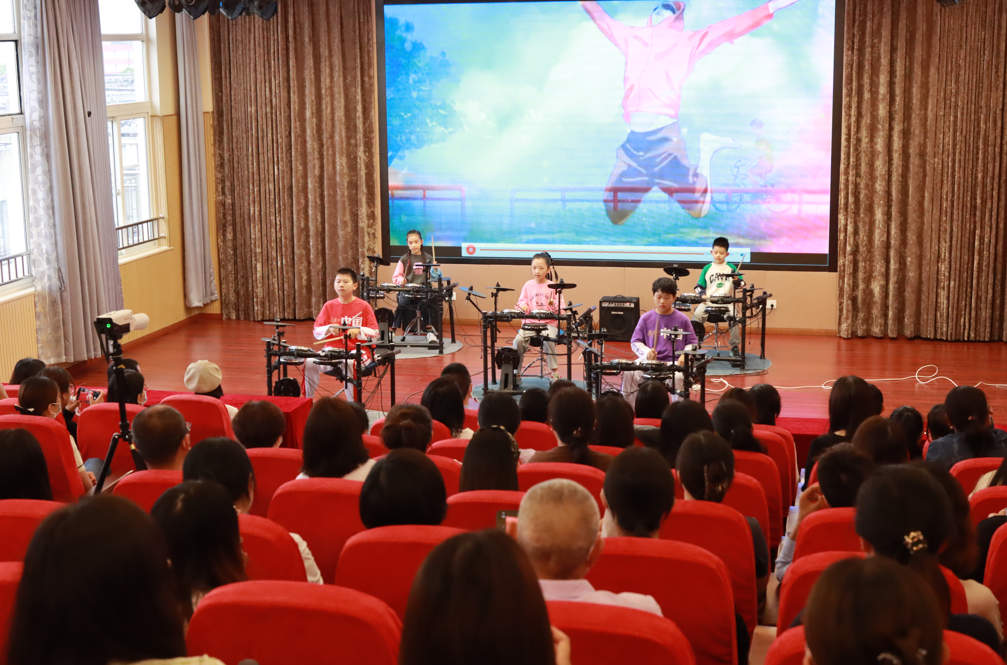 六一主题集会在活力四射的架子鼓表演中拉开序幕。