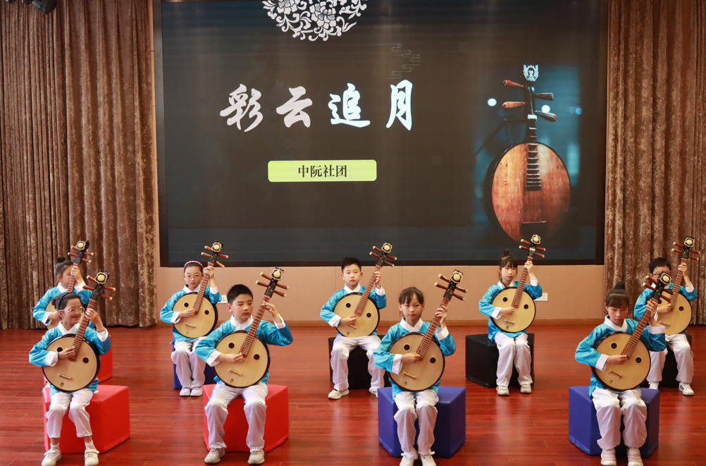 明月皎皎照我心,彩云翩翩诉真情。彩云与明月相互追逐,轻盈飘逸,如诗如画。听!小月芽们带来的中阮表演《彩云追月》。