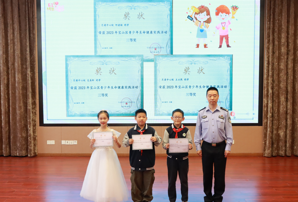 在这个特别的日子里,学校党政工领导及法治副校长、月新派出所副所长徐镇为小月芽们送上了节日的美好祝福!