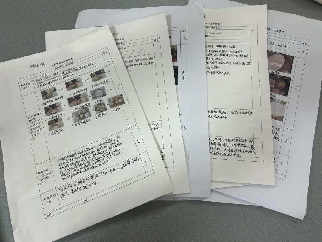 完成实践作业任务表:设计实践作业任务表,1)实验原理:实验菌种,发酵条件。2)制作过程和方法(说明:可以用文字或流程图+照片的形式完成)制作馒头的材料用量、操作步骤、面团各阶段变化记录、馒头成品评价(口感、外观等)、遇到的问题及解决方法等内容。要求学生认真填写,帮助学生梳理制作过程,总结经验。培养学生提取信息、处理信息、问题分析和质疑能力。