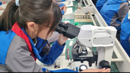 学生分组制作装片,教师巡视指导。学生将制作好的装片放在显微镜下观察。