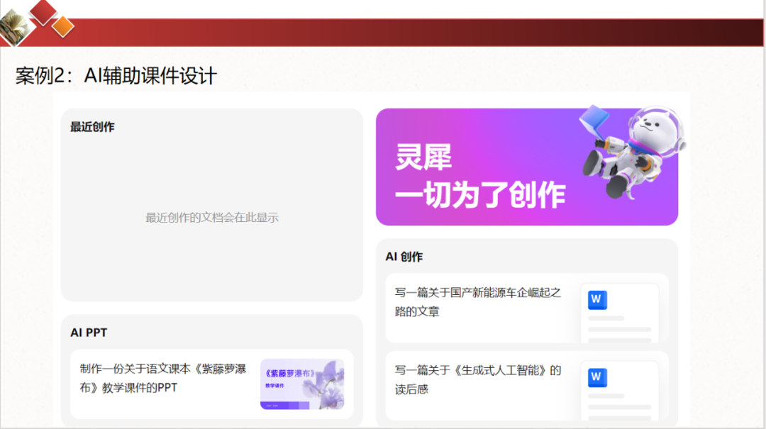 AI技术可自动生成教案、习题及多媒体素材。例如,教师可以利用大模型设计课程,通过AI工具快速生成图文并茂的课件,节省80%的备课时间。