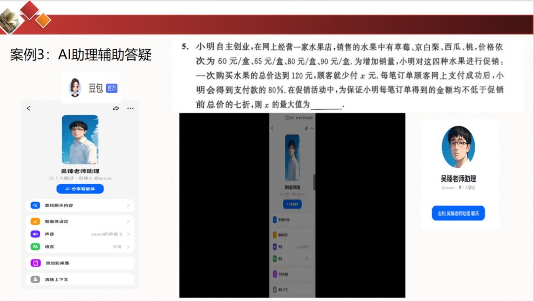 教师通过AI教研工具开展创新实践,帮助教师模拟课堂场景,优化教学设计,构建教师-AI协同的教研生态,推动专业能力跃升。