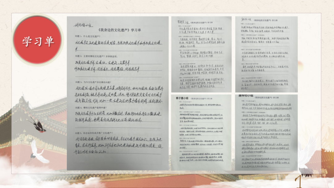 1.完成一份《我身边的文化遗产》学习单;