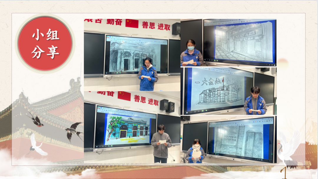 任务一:学生实地考察或带着之前观看纪录片以及收集到的资料,组成项目小组,小组轮流分享课前以小组的方式整合的关于我们当地文化遗产的相关知识,也可以通过团队互助,可以对合作探究过程进行总结分享。