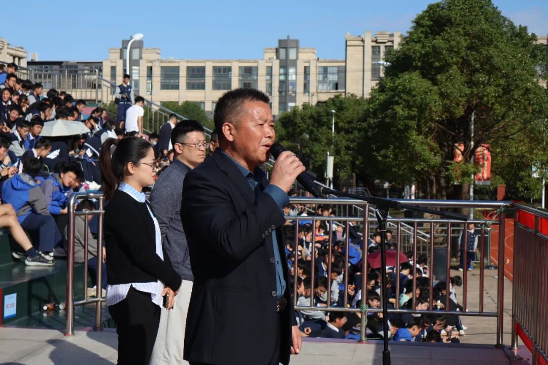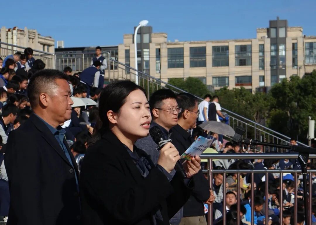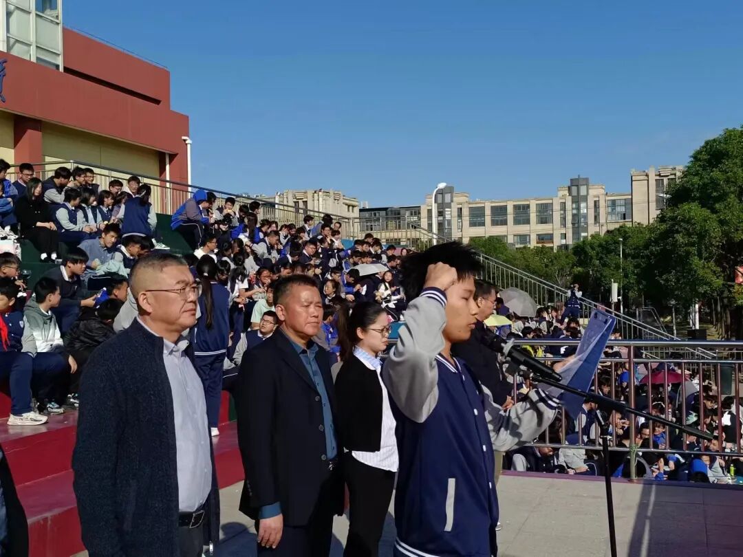 本次运动会开幕式由校务办主任褚佳雯老师主持,全体学校行政领导及老师们出席开幕式。张建峰副校长介绍了我校“体教结合”的办学特色,历数了2024年江中学子在各类赛事中斩获的佳绩,我校快速而稳定的发展特色赢得了社会各界的高度赞誉,用实际行动向家长、向社会呈交了一份满意的答卷。张建峰副校长希望同学们在比赛中坚持“友谊第一,比赛第二”的原则,遵守规则,注意安全,展现出良好的体育道德风尚。裁判员代表陈鑫佳老师和运动员代表袁熠辉宣誓后,校党支部书记、校长严福明宣布上海市江镇中学2024学年秋季运动会正式开幕。