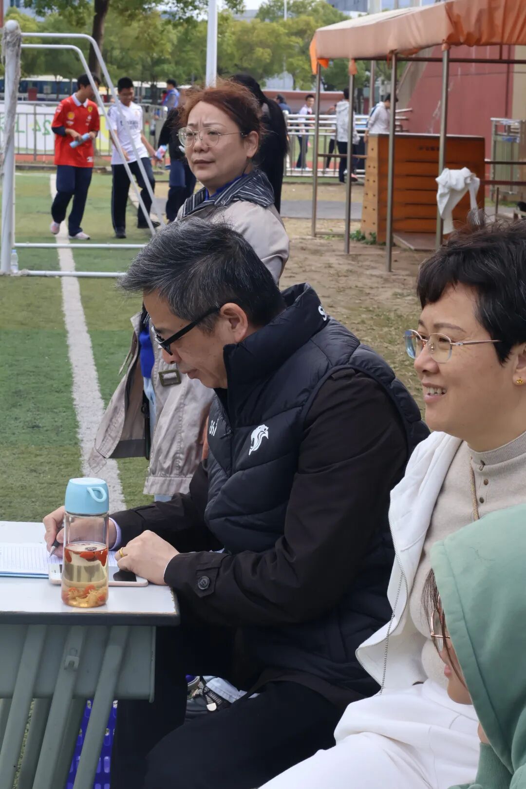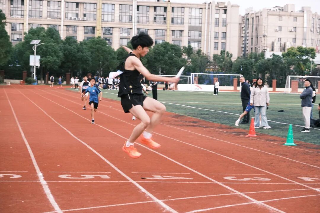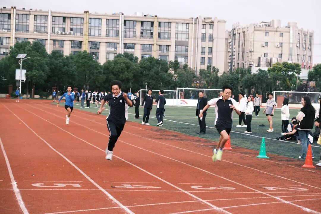 赛场上,裁判们掐表计时,恪守“准确、公平”的比赛原则;运动健儿们全力以赴,用青春挥洒着汗水;看台的同学和老师们为运动员们纷纷加油助威。在比赛过程中,同学们严格遵守规则,展现出了良好的竞技风范。尽管有同学在比赛中摔倒,但他们毫不气馁,迅速站起来继续冲刺,这种顽强拼搏的精神感染了在场的每一个人。