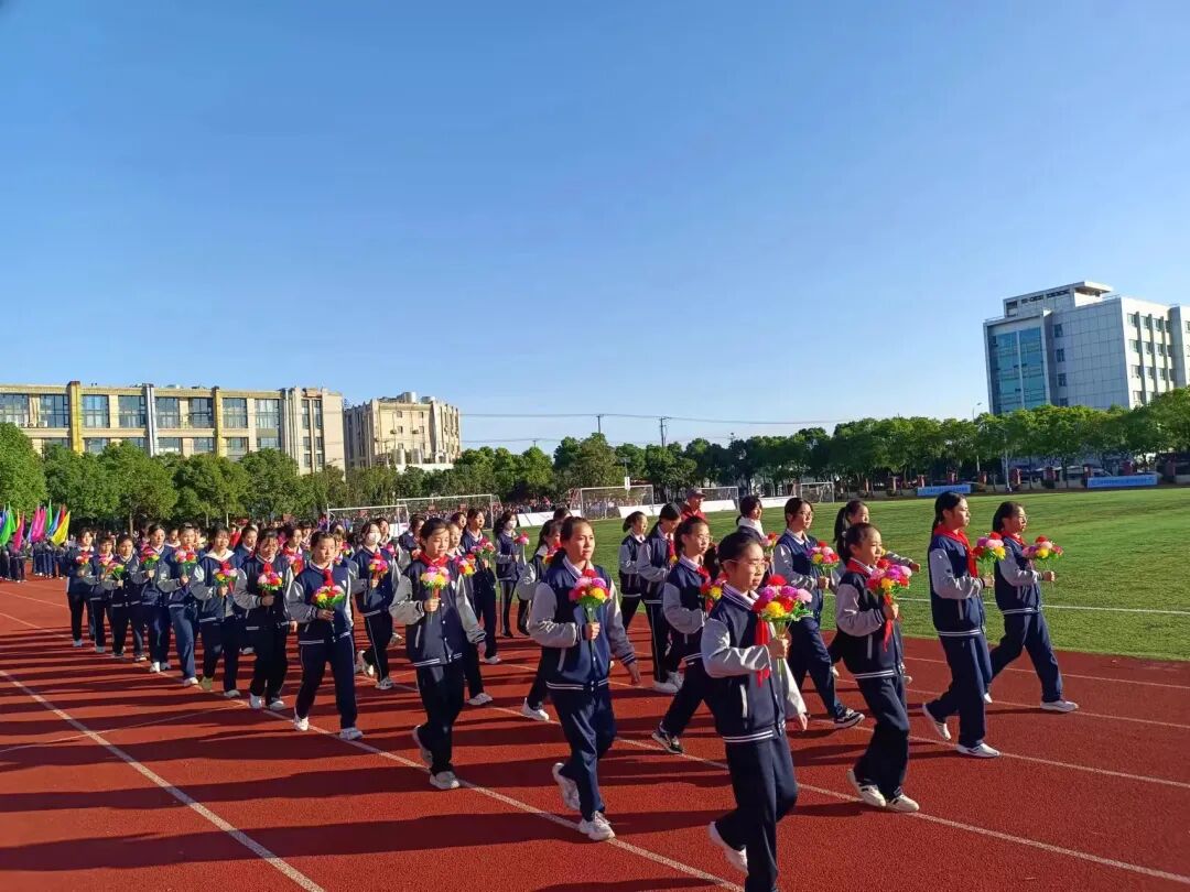 伴随着《运动员进行曲》响起,学校国旗护卫队、鲜花队和彩旗队的队员们迈着铿锵有力的步伐,向我们走来。五颜六色的彩旗迎风飘扬,象征着我们丰富多彩的校园生活,色彩斑斓的花束迎着朝阳绽放,向全体师生致以最美好的祝福。随后,各班级方阵依次入场,他们高举着班牌,昂首阔步地走过主席台,为我们带来了精彩纷呈的表演,展现出了江中学子的青春活力与激情。