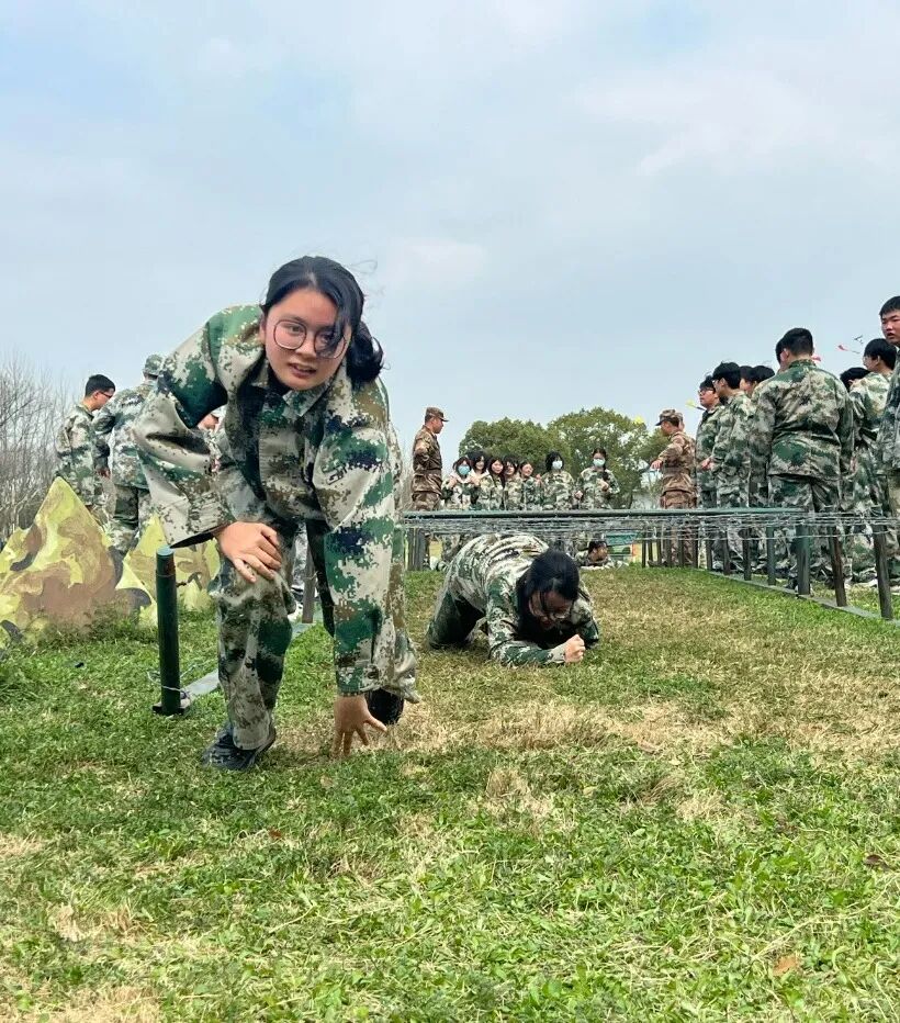 在单兵战术训练中,学生们学习了作战中常用的军事战术,进行了草地匍匐和投弹训练,锻炼了同学们的准确度和反应能力。