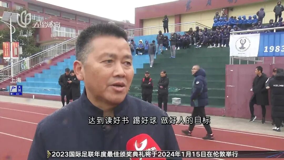 江镇中学严福明校长接受了五星体育采访。严福明校长表示,此次友谊赛将校园足球走向更加深入,使体教结合工作做得更加扎实,同时激发学生从小热爱体育,达到读好书、踢好球、做好人的目标。