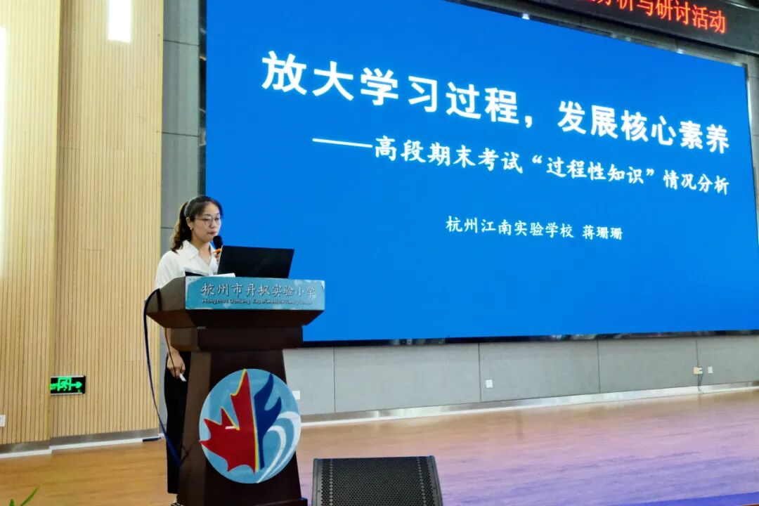 杭州市江南实验学校蒋珊珊老师以《放大学习过程,发展核心素养》为主题进行高段教学质量分析。她聚焦高段 “过程性知识” 教学,从概念界定、错因分析、教学建议三方面展开深度解读,并结合高段期末典型错题,提出 “强化过程性知识教学意识、细化知识生成体验、优化教学效果评价” 等具体建议,助力学生核心素养发展。