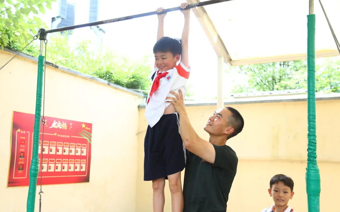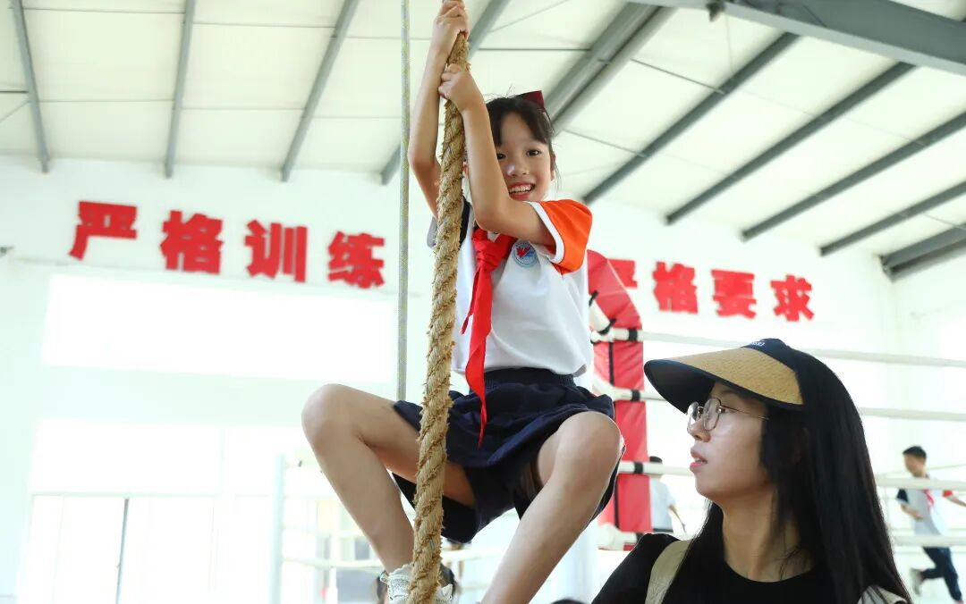 随后队员们来到训练场地,在看完战士们的示范动作以后,大家个个跃跃欲试,依次体验了楼房攀登(爬绳、爬杆)、单杠、双杠、跑步机、划船机、拳击等各种训练项目,孩子们都围着战士叔叔问:“你们每天都要练这些吗?”“累的时候怎么坚持呀?”战士们笑着说:“就像蔡永祥叔叔守大桥一样,坚持住,才能保护大家呀!”孩子们似懂非懂地点点头,小脸上多了几分认真,队员钱锐锋说:“原来英雄的勇敢,不光是一瞬间的冲刺,更是日复一日的坚持。”