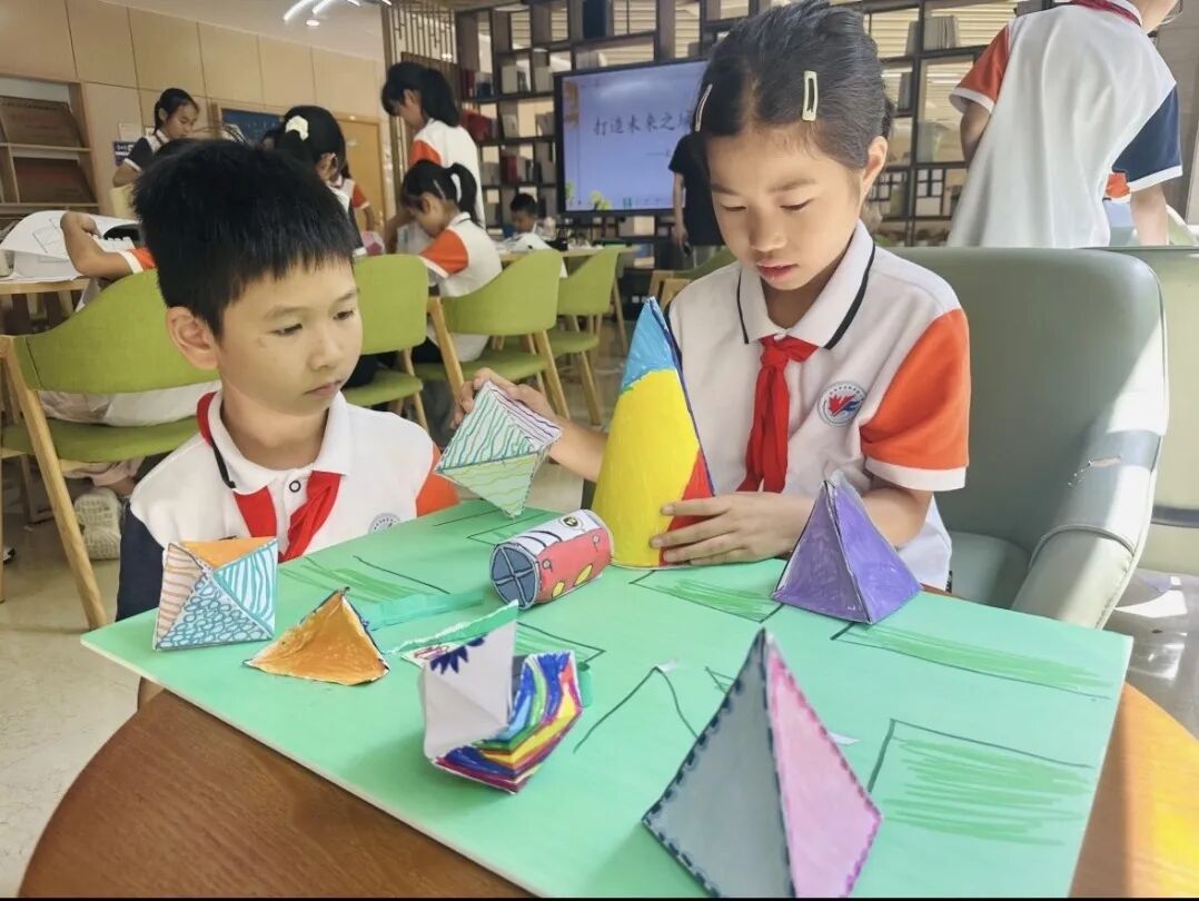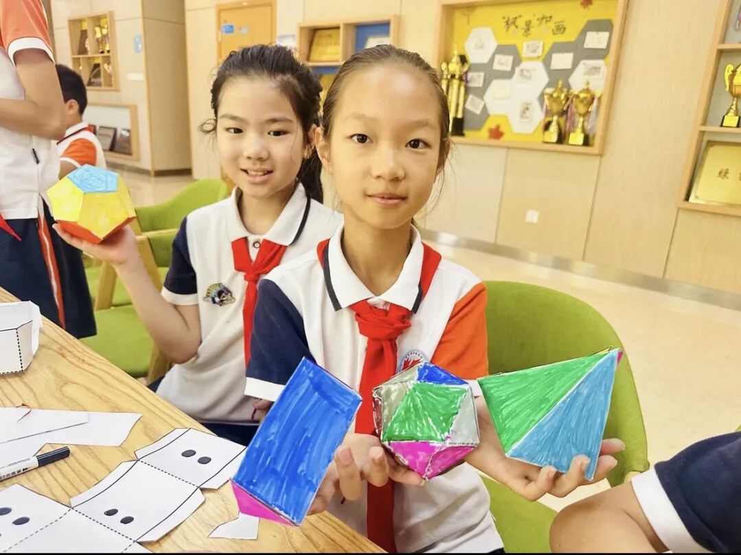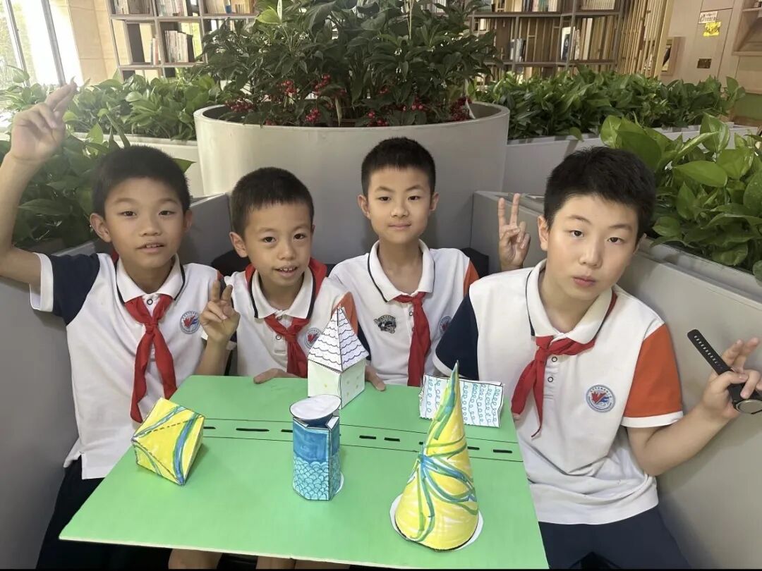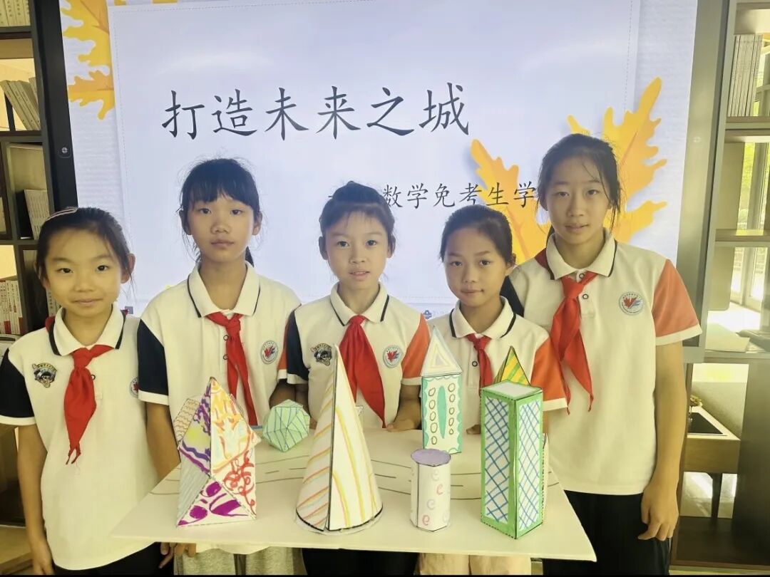 数学免考生们巧手剪折,将平面展开图变成立体几何建筑,用数学规律装饰道路与楼宇,打造心中的未来城市。在动手实践中,他们深入理解了图形与空间的关系,展现了无限的创意与想象力!