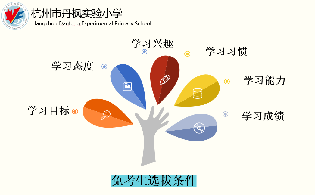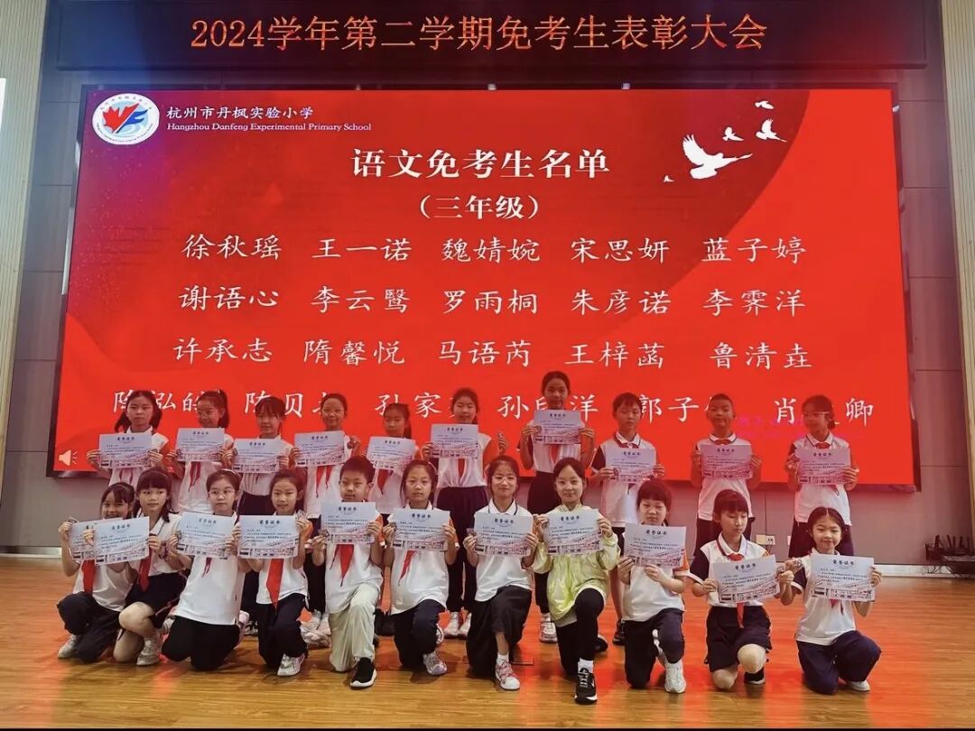 开学初,学校组织三、五年级老师共同讨论并制定了《2024学年第二学期杭州市丹枫实验小学免考生制度》,明确免考生选拔要求,并通过广播向全校公布免考制度。在学期过程中,语数英科各学科老师,坚持发展性、全面性、过程性原则,从学习态度、学习兴趣、学习习惯、学习能力等几个方面对学生进行综合考查。