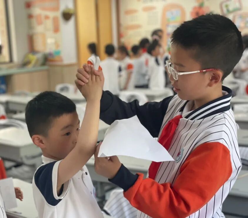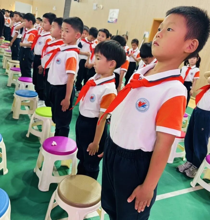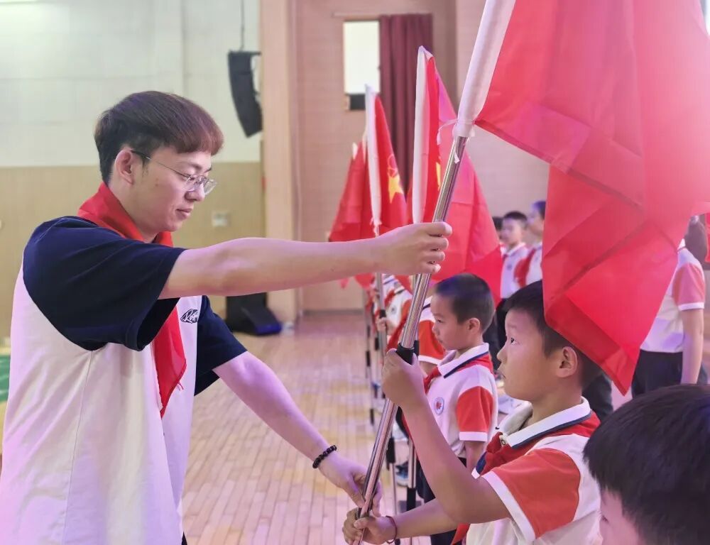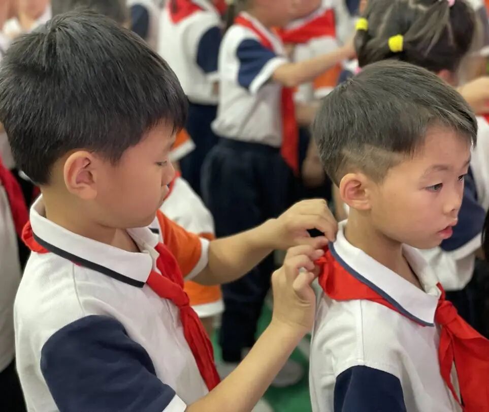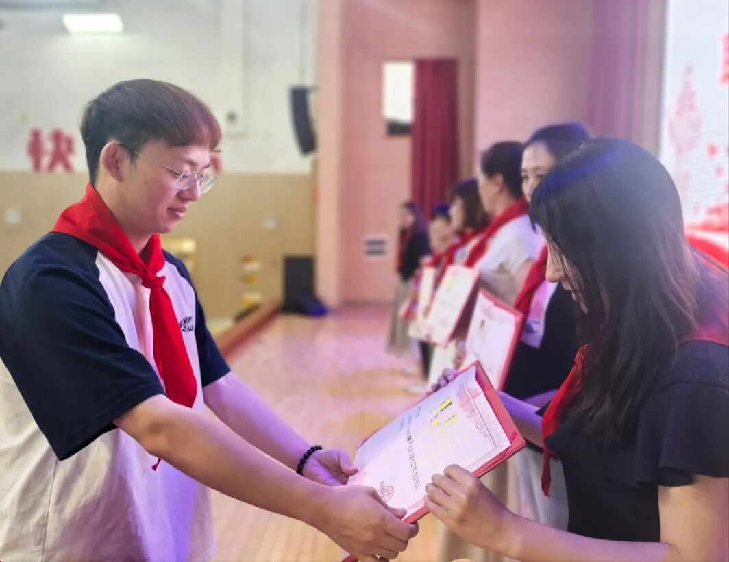 在全体准队员期待的目光中,大队辅导员胡安琪老师宣读入队决定,德育研究中心副主任李春雨老师宣读2024级入队名单,每位新队员的脸上都洋溢着激动的笑容,这无疑是他们人生中极为重要的时刻!二年级的队员们满怀祝福亲手为新队员们披上了人生中的第一条红领巾,祝贺他们成为一名光荣的少先队员。