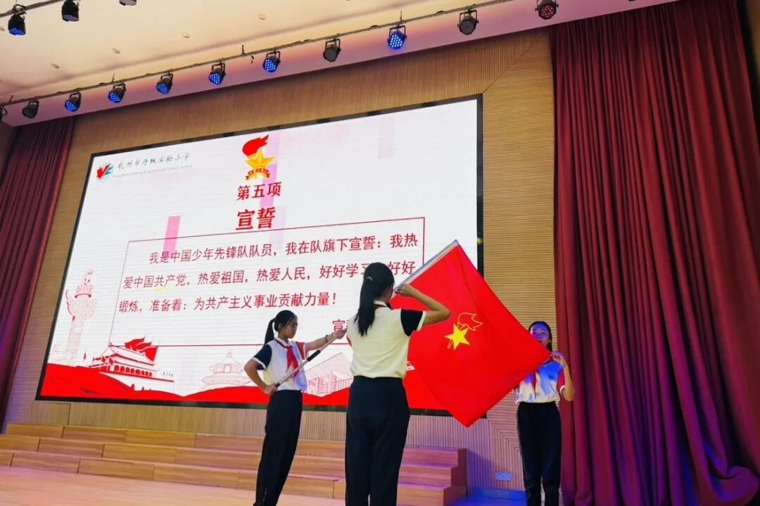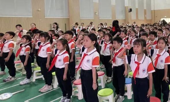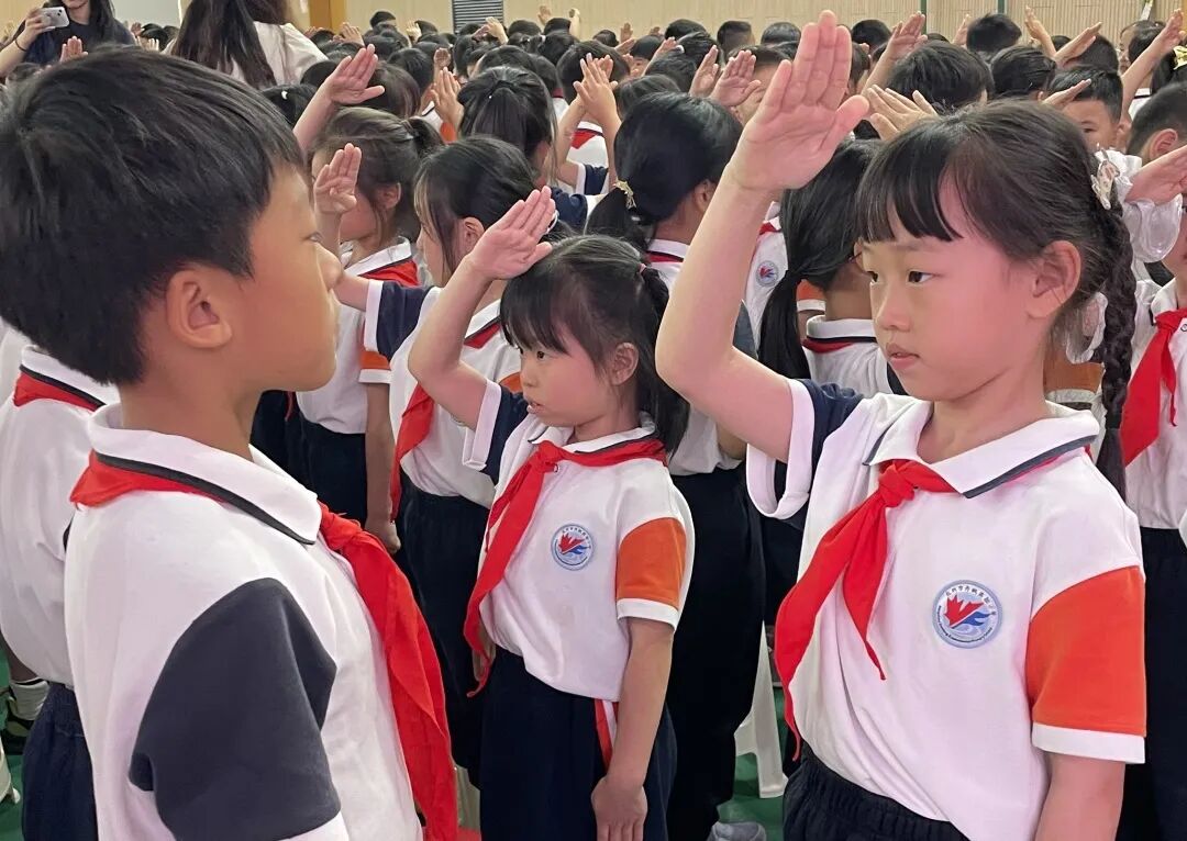在六一国际儿童节到来之际,为了培养学生的主人翁意识和爱队意识,了解队史,掌握队仪,尊敬少先队,教育学生继承和发扬中国少年先锋队的光荣传统,培养学生健康向上、积极进取的精神,近期杭州市丹枫实验小学举行了2024级新队员入队活动。