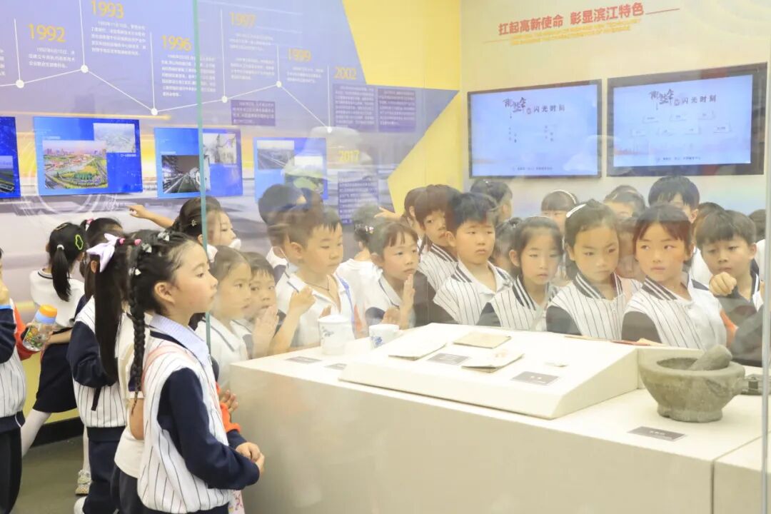 第一批入队仪式在滨江区党群服务中心举行。社区少工委委员、一年级年级组长、学校少先队大队辅导员为新队员佩戴熠熠生辉的队徽。小小的队徽,大大的责任,每位新队员的脸上都洋溢着自信的笑容。