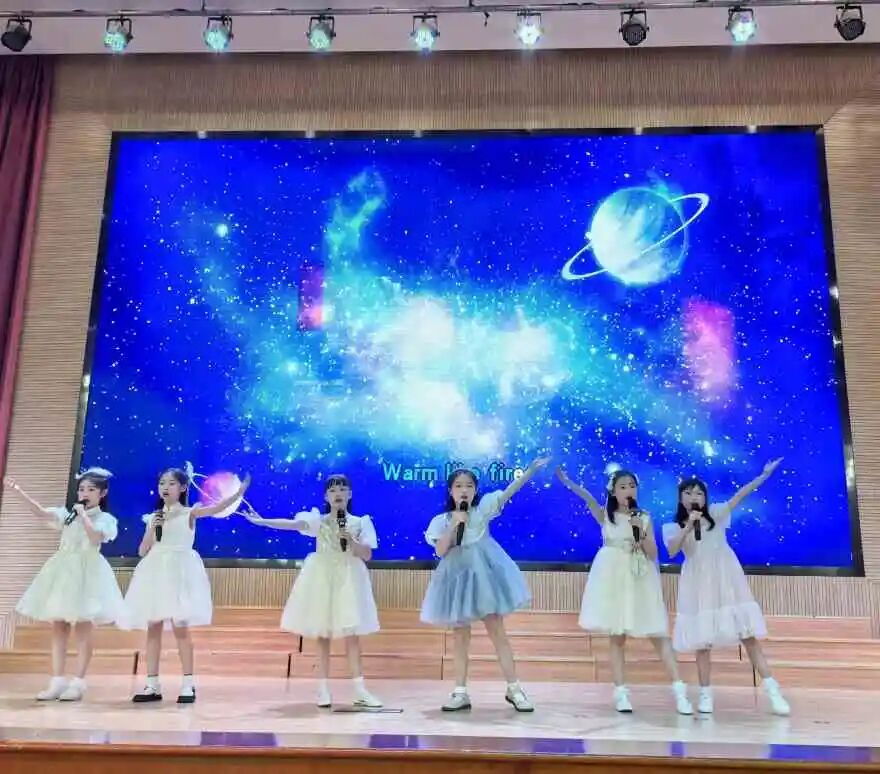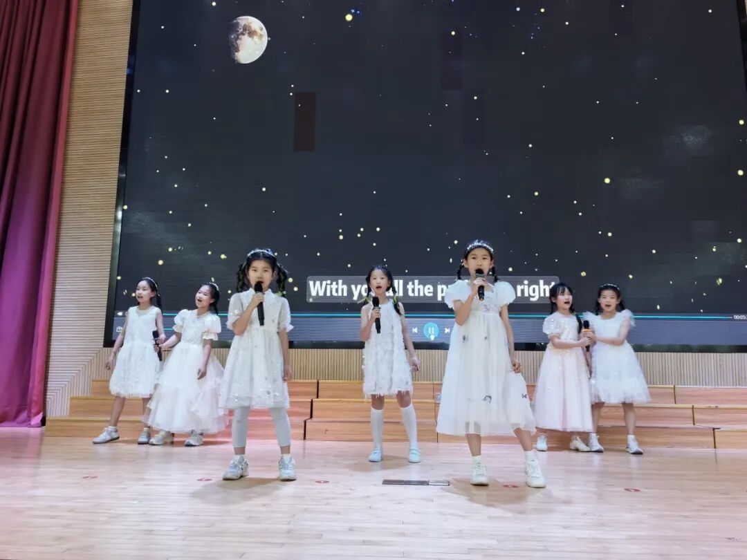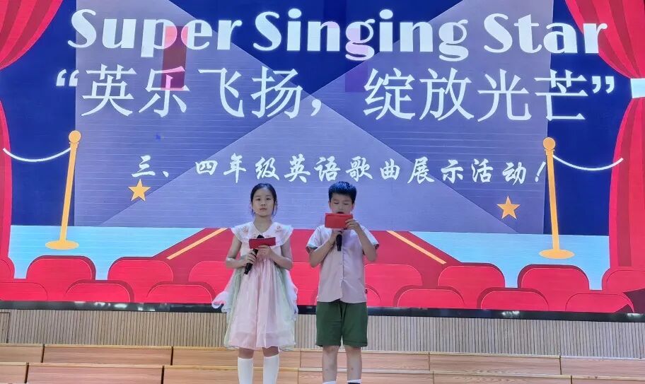 活动伊始,两位小主持人闪亮登场。字正腔圆的英文表达流畅自然,自信的笑容与稳健台风感染力十足,瞬间点燃全场气氛,为本次歌唱活动拉开序幕。