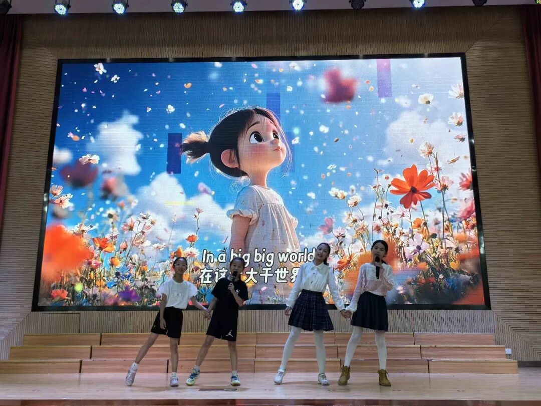 301 班的张艺涵、吴初然、杨景茵、高筱楠、赵灵韫和陈婳祎同学带来经典歌曲《Big big world》。她们用纯真嗓音诠释着歌曲中对世界的新奇与探索,轻快旋律搭配清晰英语发音,带大家走进充满想象的音乐世界。