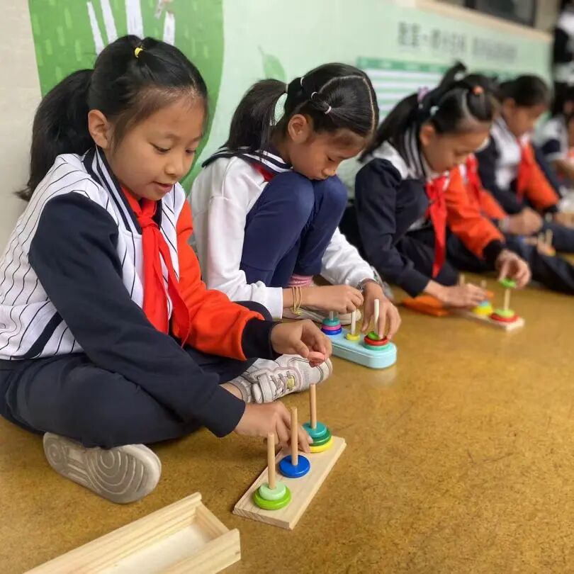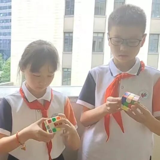 有些班级把知识也融入到课间游戏中,同学们玩起了益智类游戏,汉诺塔、“跳房子”、多米诺骨牌、数字七巧板、巧解九连环、巧算24点等等……玩转魔方也是深受同学的欢迎!