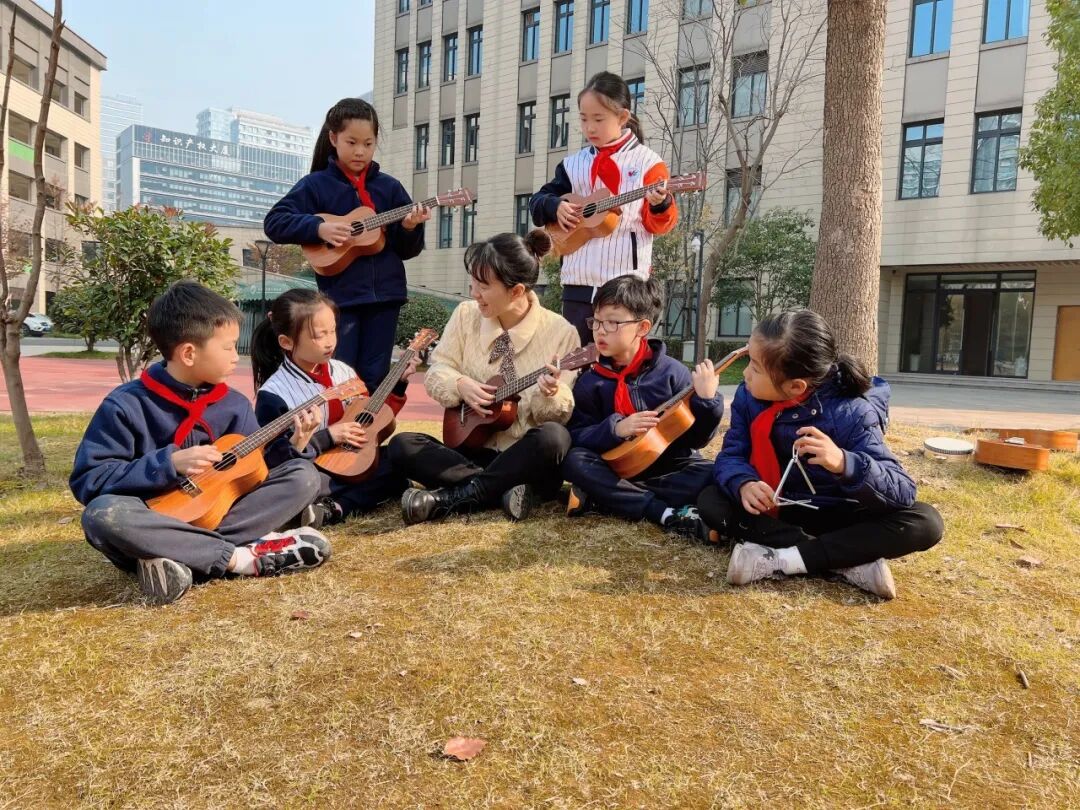 丹枫实验小学校园还有别样浪漫的午后时光,孩子们走出教室、走廊的一方天地,来到了哪里呢?原来是有同学在树下弹着尤克里里,那美妙的歌声,令人陶醉;同学们和老师围坐在一起讲故事、谈心;还有以班级为单位排成整齐的一支队伍,连贯地跳入又准确跳出,再迅速抽身跑进队伍,每个孩子都屏息凝神,全身心地投入到这项有趣又富有挑战性的团体活动之中;同学们脚步轻快,三五成群,彩色的毽子上下翻飞,校园里充满了欢声笑语;春之樱花,夏之枇杷,秋之香柚,冬之梅花,清香的花果甜味不仅弥漫在阳光下,也浸润了孩子的心灵,带给孩子亲近自然的浪漫时光。