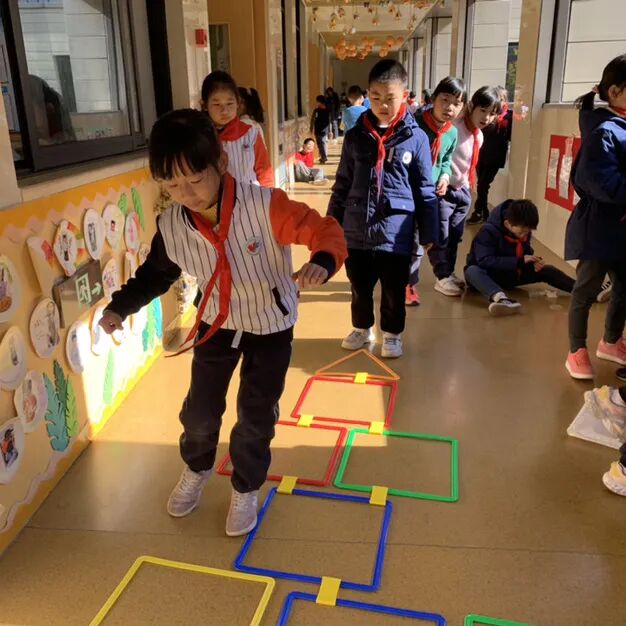学校各班利用走廊、转角、教室后方区域,开展了各种各样的课间趣味小游戏。把活动空间选择权交由孩子,让他们充分享受课间十分钟。