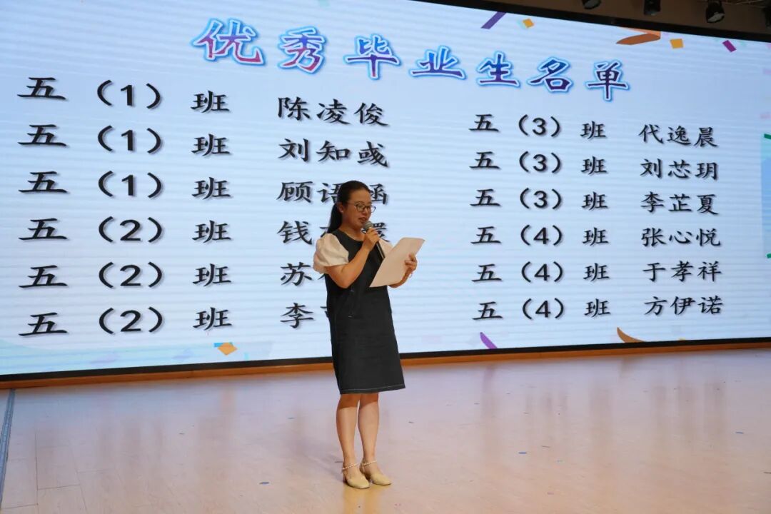 随后,教导处唐老师对2024届优秀毕业生进行表彰,王老师为他们颁奖。