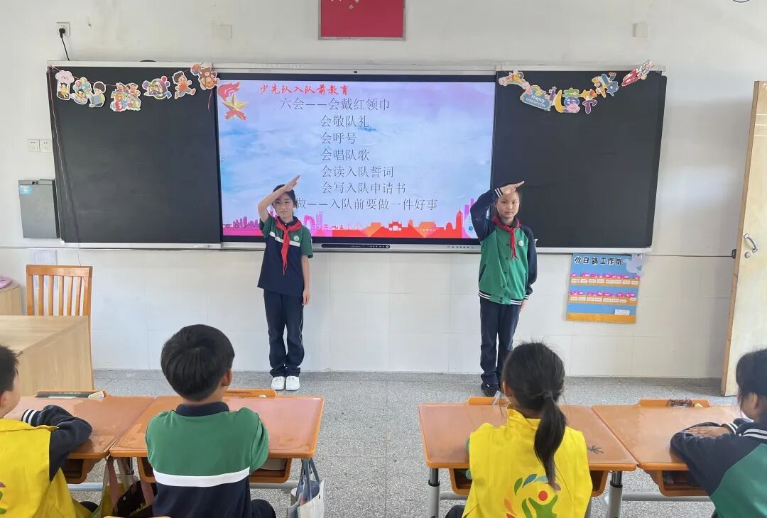 (四团小学通讯员 季少杰/文 缪菊沁/摄)为深入落实《中共中央关于全面加强新时代少先队工作的意见》和《共青团中央教育部全国少工委关于构建阶梯式成长激励体系,增强少先队员光荣感的指导意见》,有组织、分批次地吸收适龄少年儿童加入少先队,增强少先队员光荣感和责任感,我校开展了系列队前教育和考核活动。