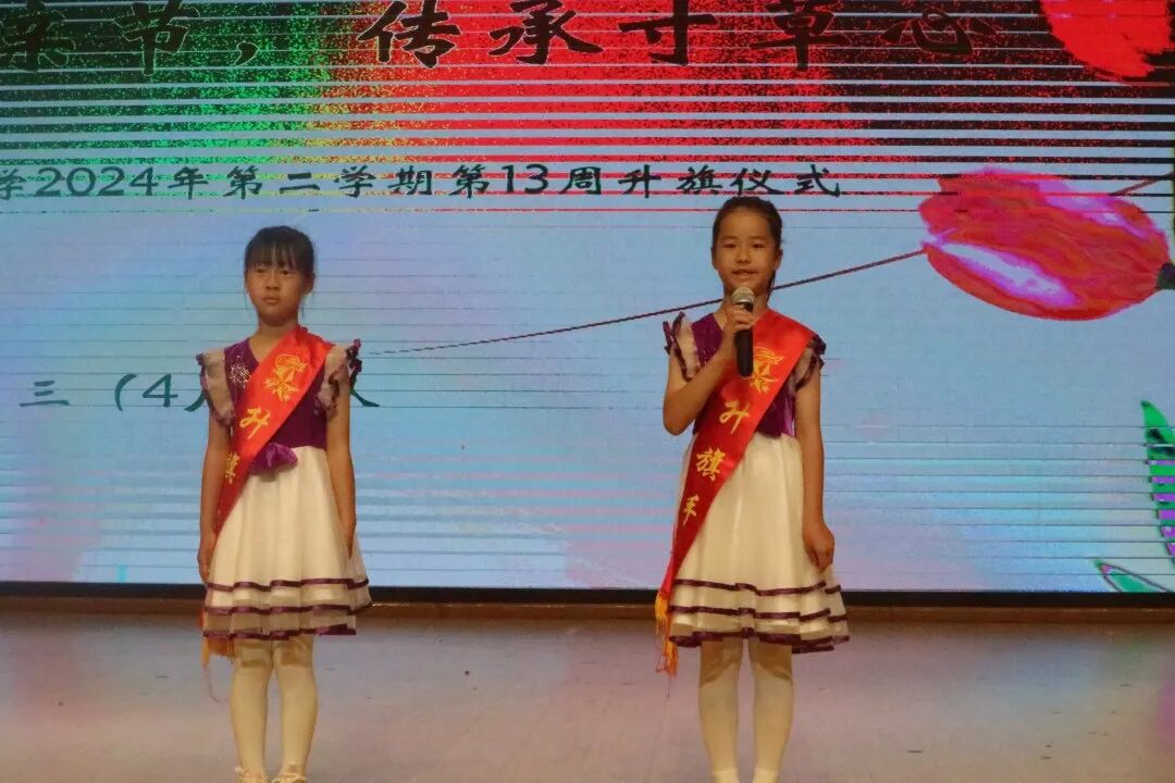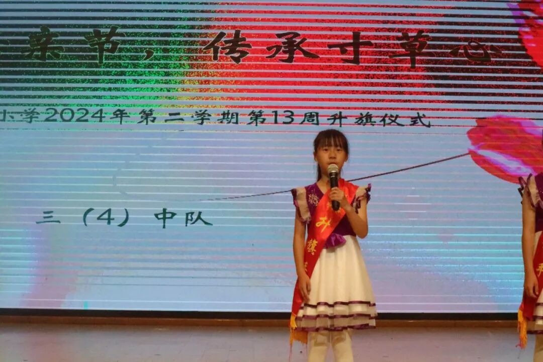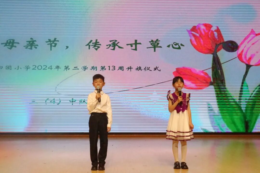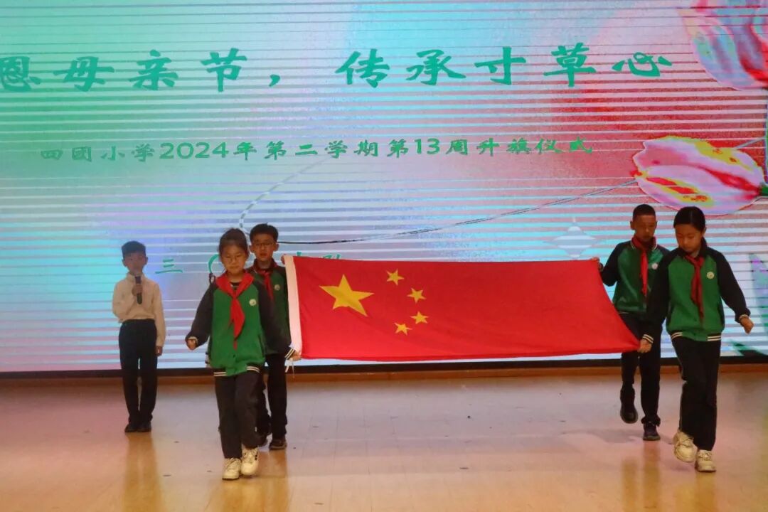 (四团小学通讯员 季少杰/文 缪菊沁/摄)五月的风携着康乃馨的芬芳轻轻吹过,在母亲节这个充满温情的日子,5月12日上午,四团小学举行2024学年第二学期“感恩母亲节,传承寸草心”第13周升旗仪式。