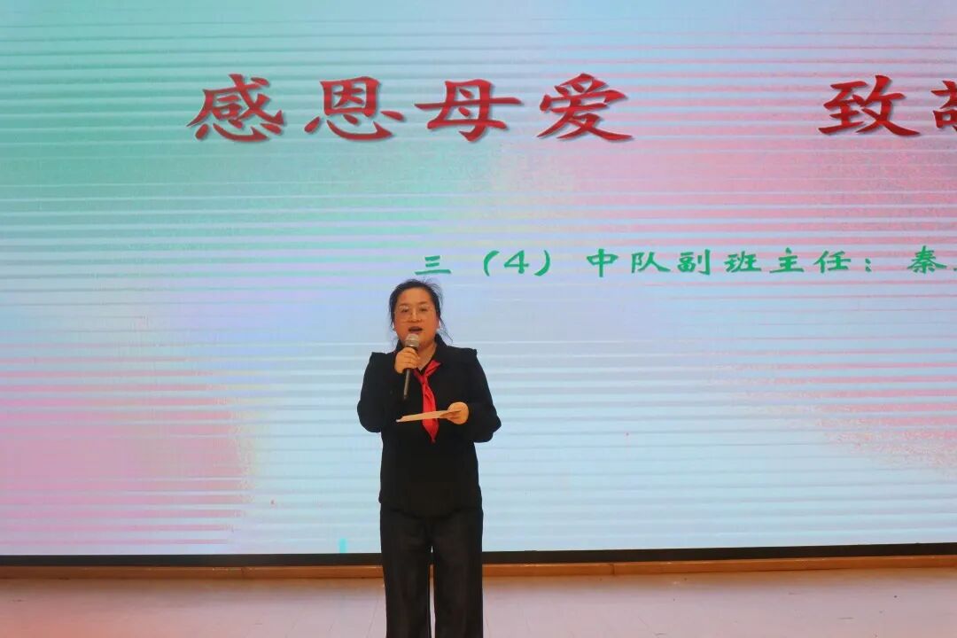 三(4)中队秦兰兰老师带来国旗下讲话,呼吁同学们在这个特别的日子里,用行动感恩母亲。为她捶一次背,给她一个温暖的拥抱,真诚地说一声“妈妈,您辛苦了,我爱您”。让我们把对母亲的感恩,化作学习的动力,以优异的成绩回报她的付出。
