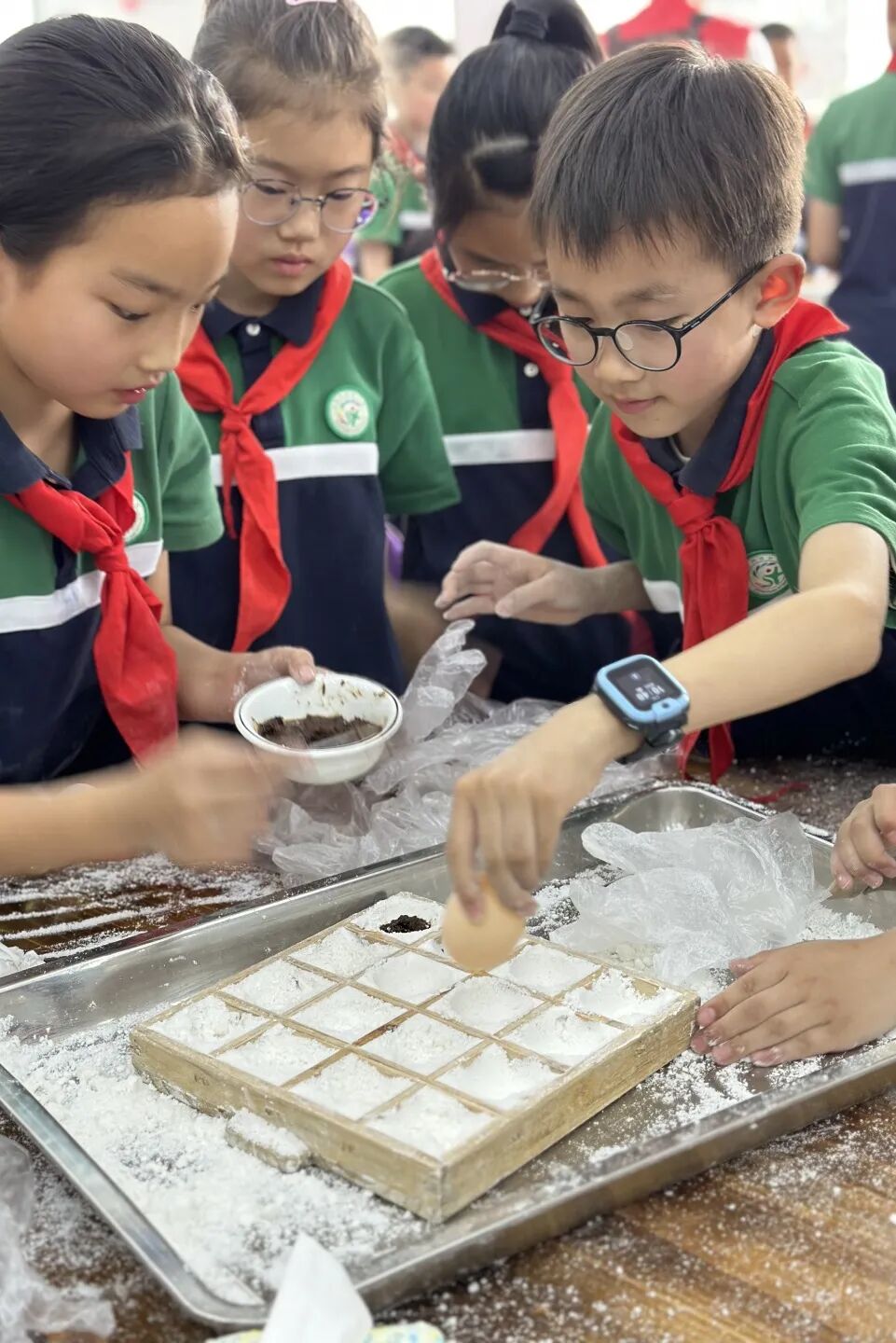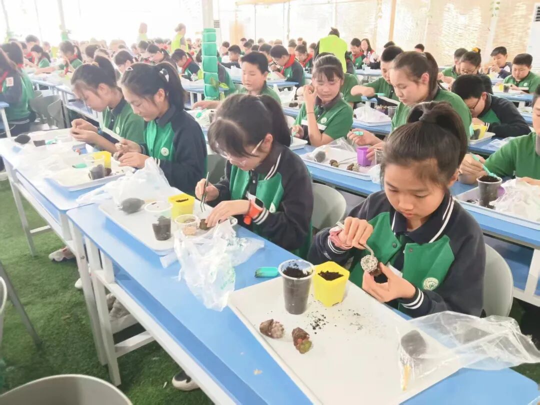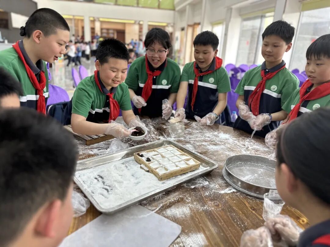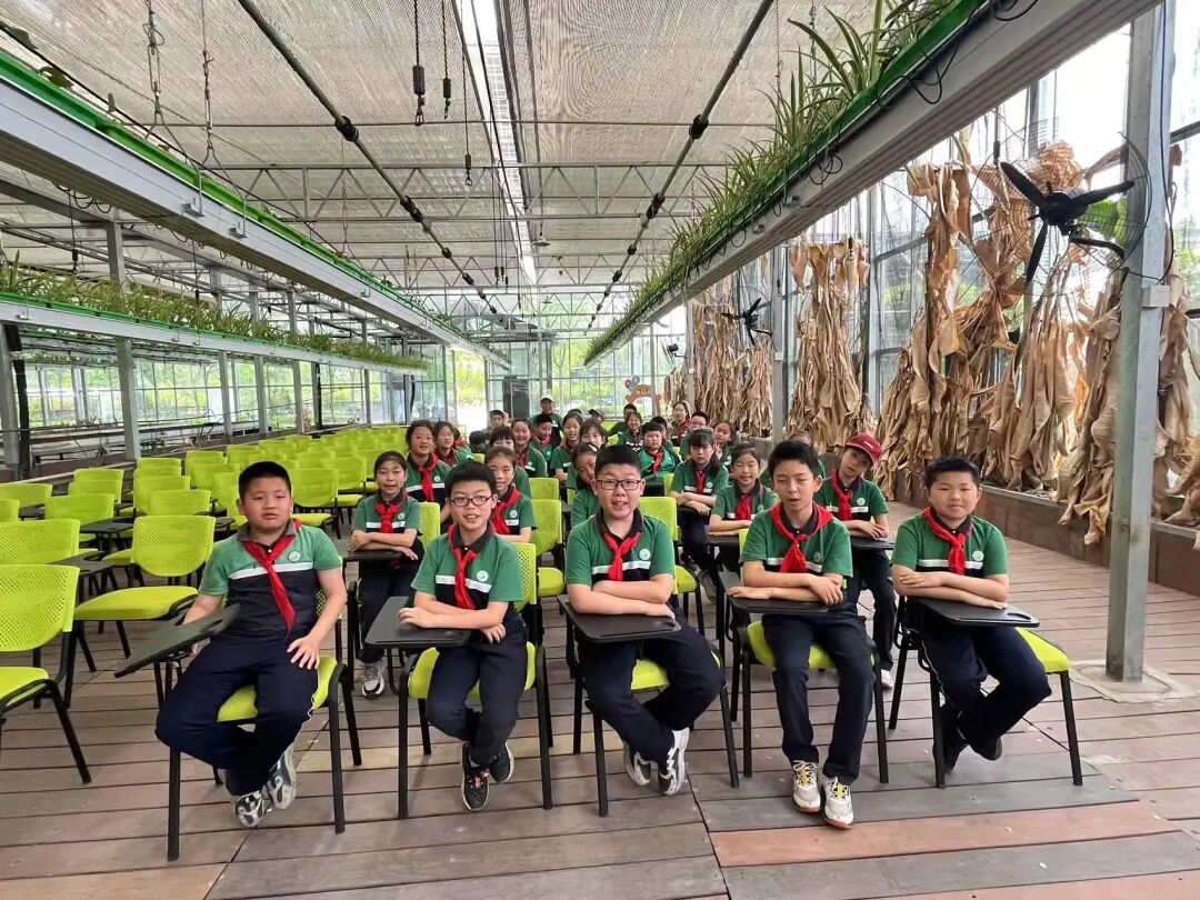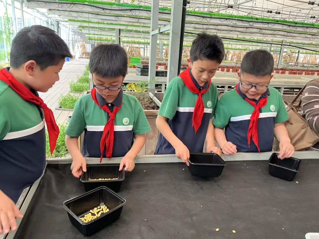 在阳光明媚的春日,四年级全体同学怀揣兴奋与期待,踏上前往群超基地和稚趣园的研学活动。在群超基地中,同学们在工作人员的介绍下,了解了无土栽培、智能温室等技术,同学们惊叹科技对农业的变革。在实践环节,同学们还分组参与“种子培育”,亲手埋下大豆种子,期待生命萌发;在米糕的制作中感受传统美食的魅力,领悟“粒粒皆辛苦”。
