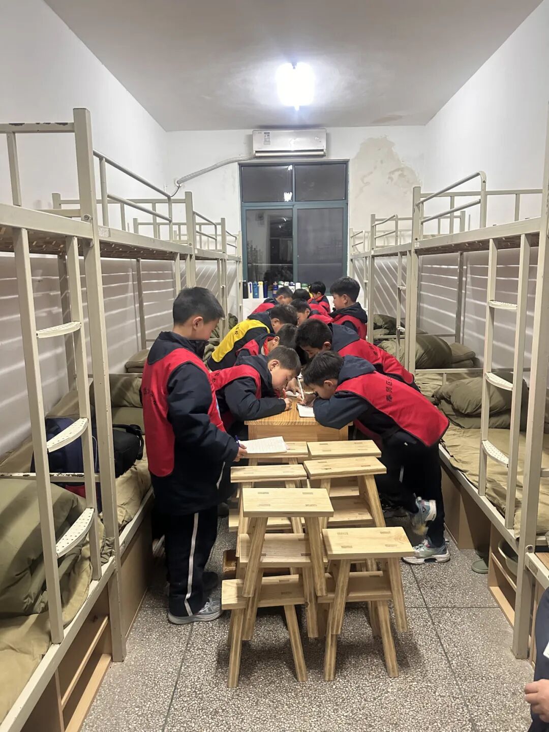 两天的活动丰富多彩,同学们听从教官的指挥,克服了身体上的疲劳,参加了军校安排的各种活动,表现出色,收获满满。他们学会了整理内务,把寝室整理得干干净净,小板凳、拖鞋、脸盆摆放得整整齐齐;学会了铺床叠被,梳头扎辫,倒水洗漱,自理自立能力得到了很大的提升。晚上,有些孩子虽然想家,但是也克服了心理上对父母的依恋,和同学们一起进入了甜美的梦乡,此刻,孩子们真正长大了!