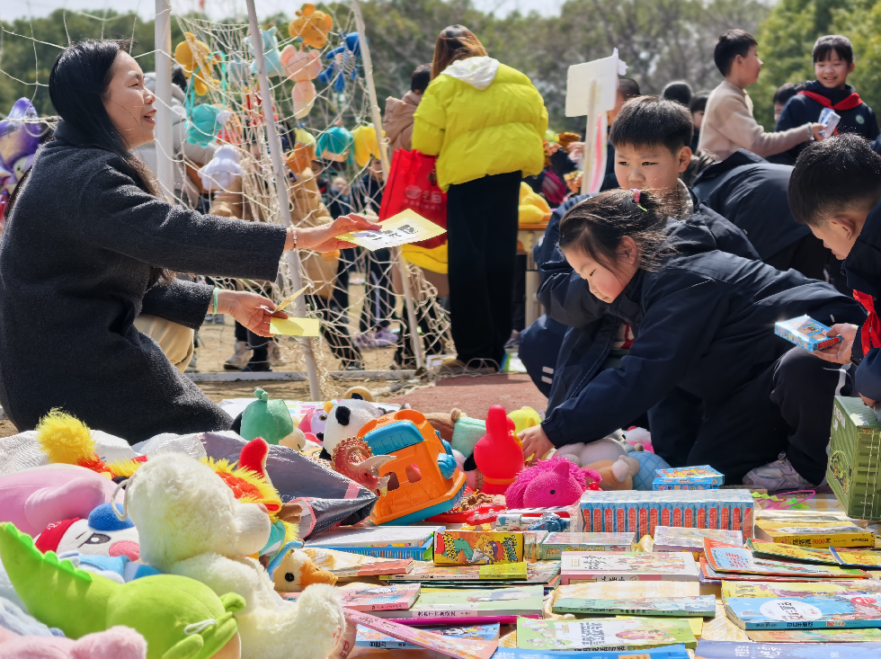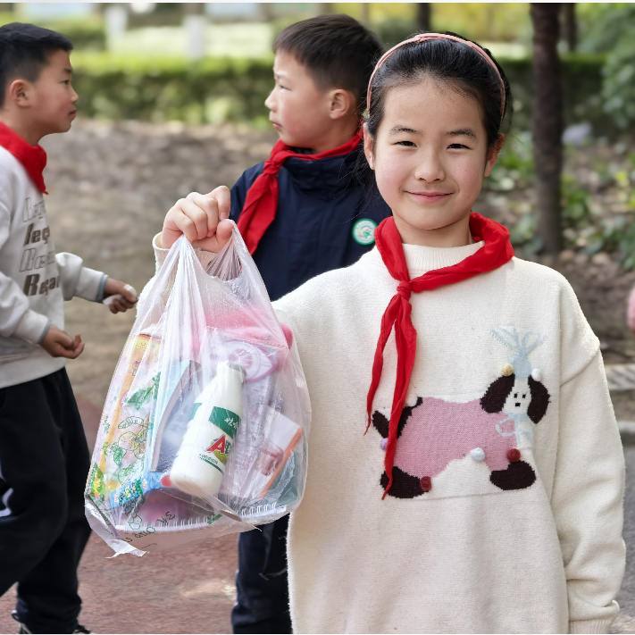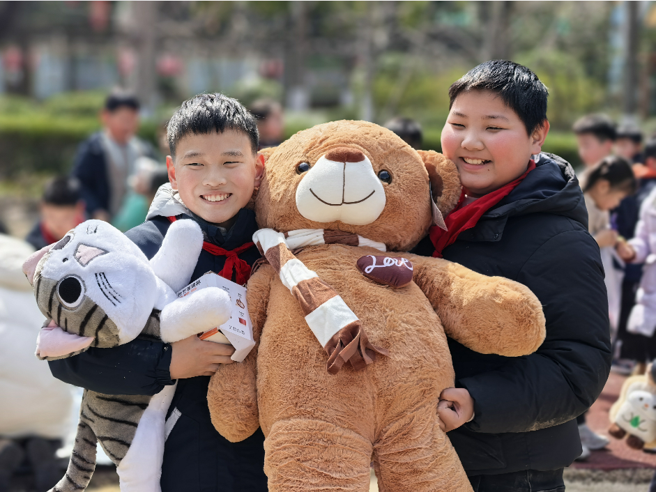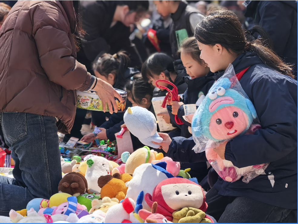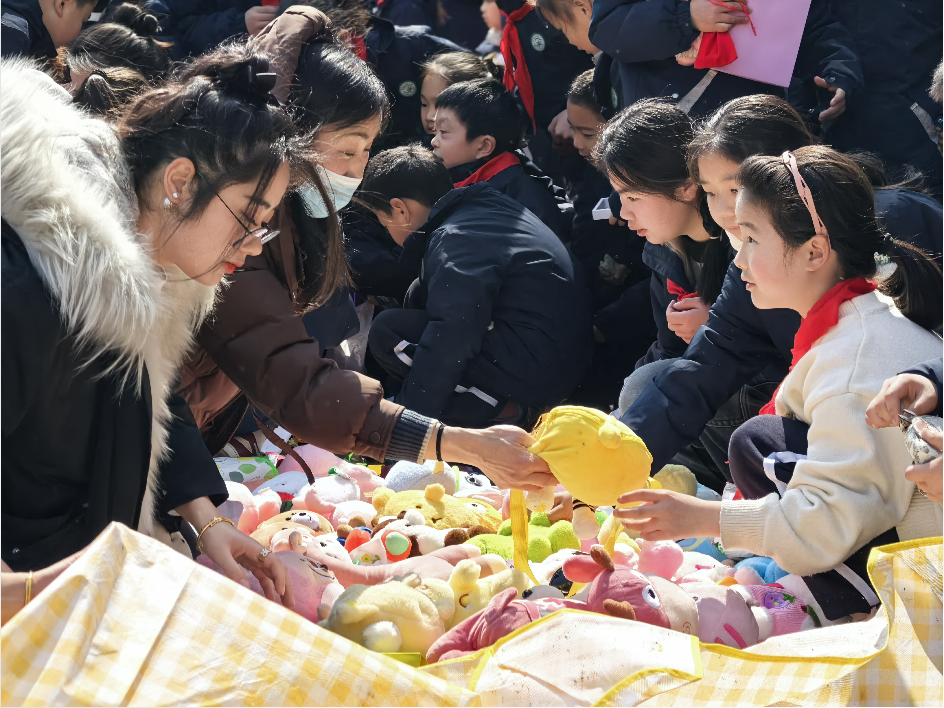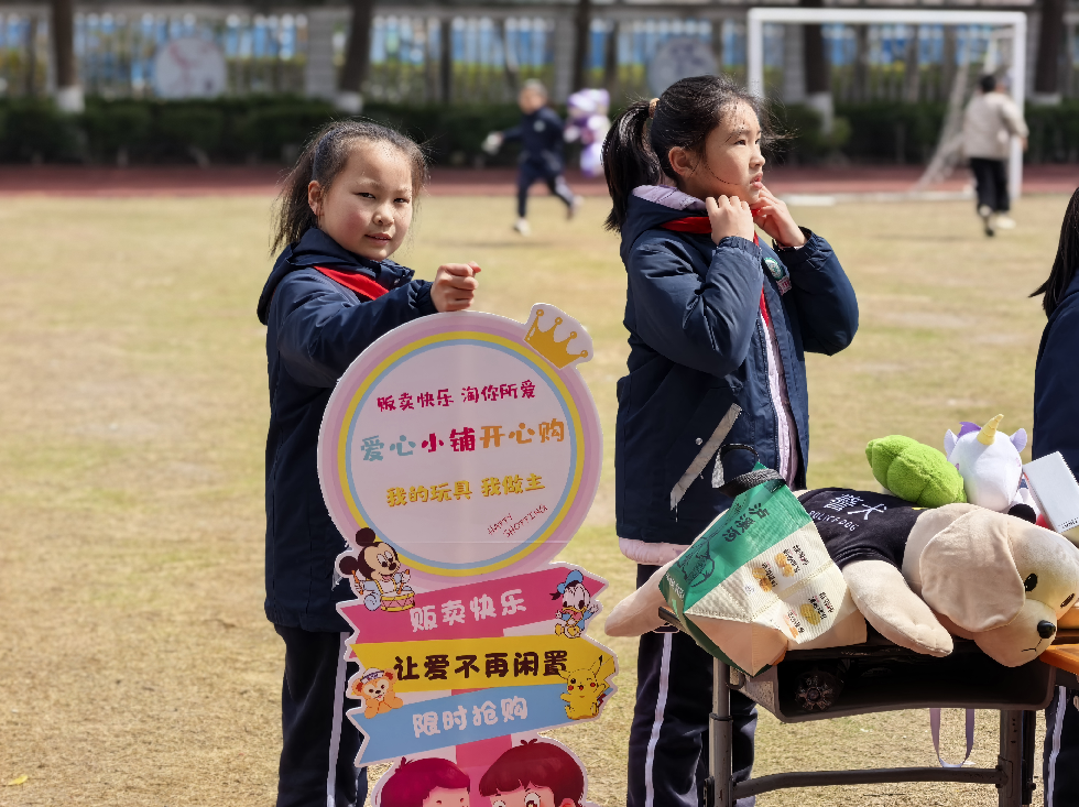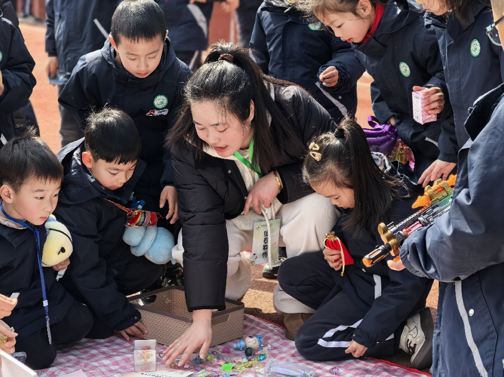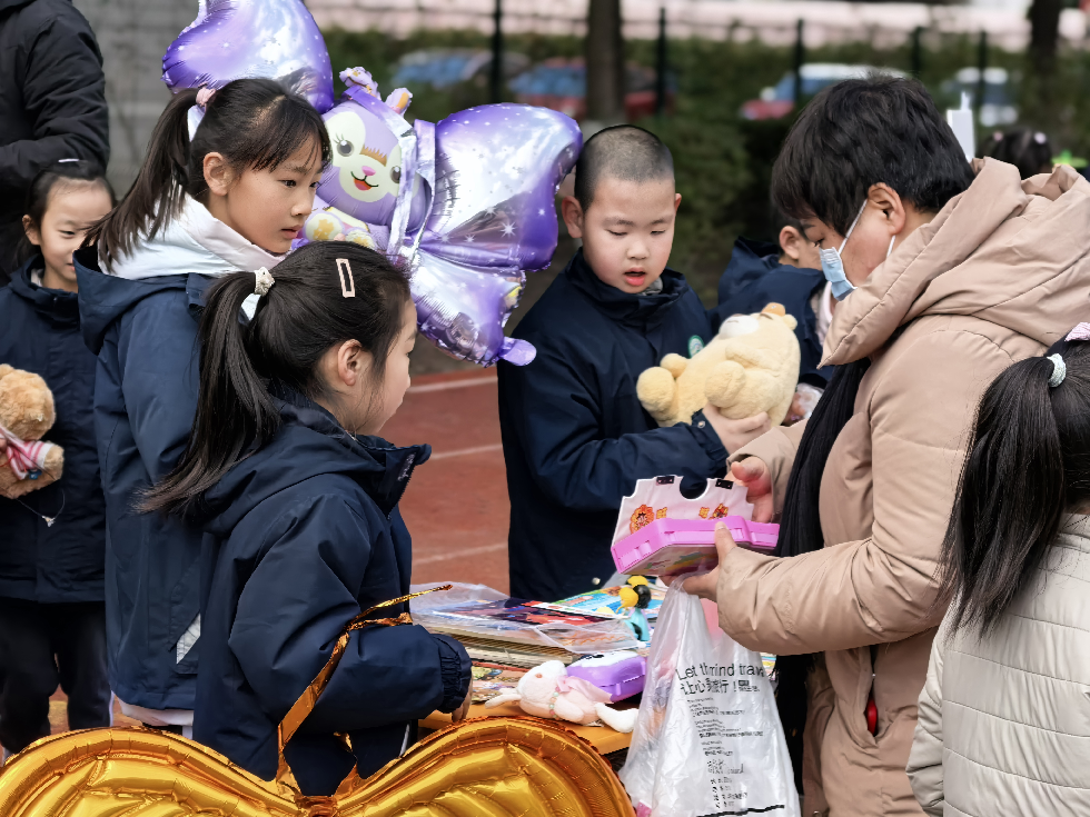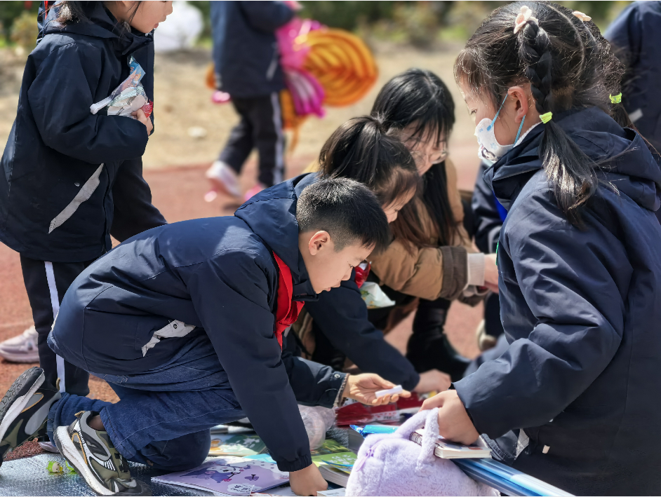 各班的义卖摊位上商品琳琅满目,摆放着大家精心准备的义卖物品,有悉心制作的手工作品、平时闲置的书籍、学习用品、多种样式的玩具等。“来一来,看一看,到处是宝贝!”队员们热情卖力的吆喝,让人忍不住驻足观望!大家各司其职,有的化身巧舌如簧的“销售员”,有的化身为细致认真的“收银员”……老师、家长们也积极响应、大力配合,为义卖活动倾心力,整个活动现场暖意涌动,格外热闹。