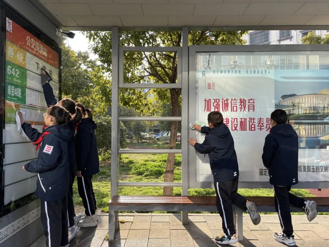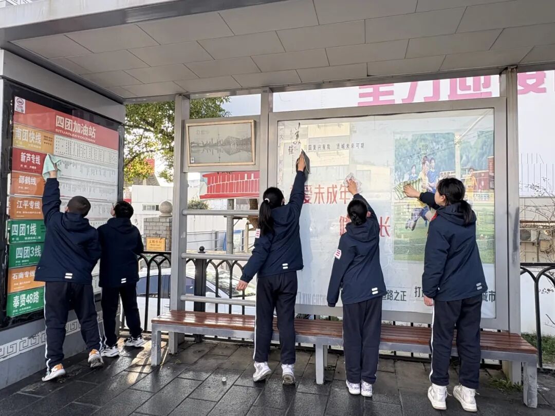 阳光下,队员们行走在四团镇的各个公交车站,拿起抹布,擦拭着公交站牌、广告牌和公交等候座椅等,队员们认真细致地进行清洁工作,不放过一块脏污,不留下一点垃圾,确保公交车站的干净整洁。在付出劳动的同时,队员们深刻体会到了雷锋精神的内涵,那是“一块砖”的力量,哪里需要就往哪里填。看到公交车站的焕然一新,看到车站乘客们的欣慰笑容,队员们不仅培养了爱护公共环境的意识,更增强了自身的社会责任感。