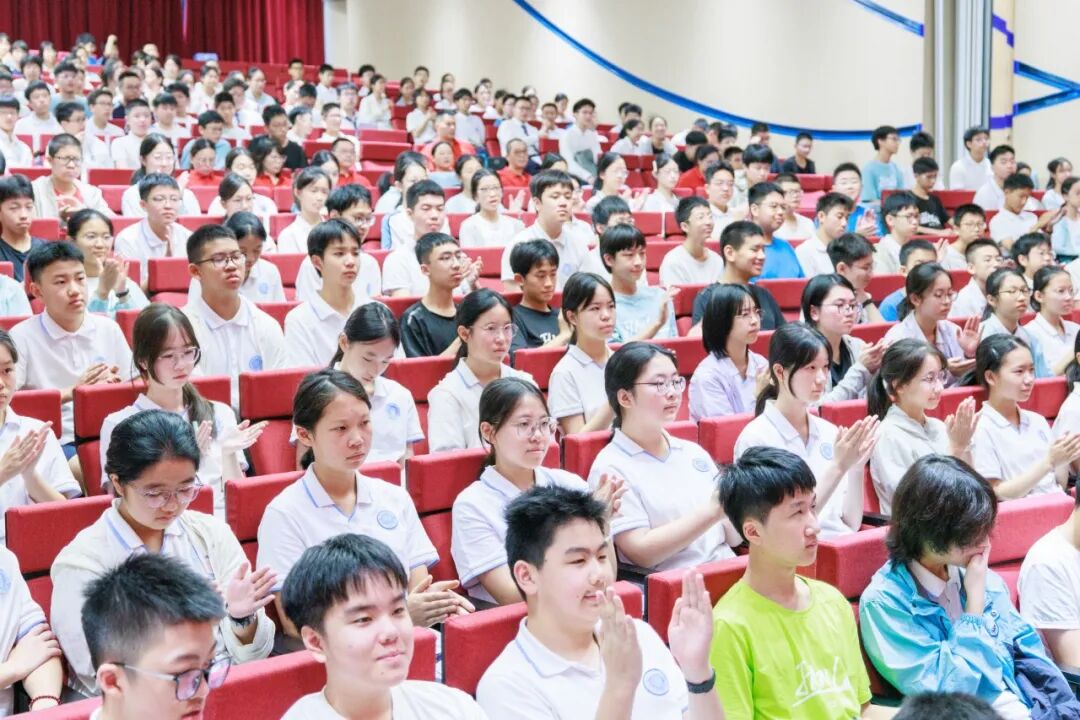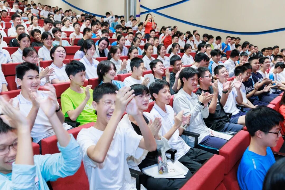 随后,饶书记引导同学们将个人奋斗融入时代洪流。她以中国AI芯片巨头“寒武纪”的创业故事为例,生动诠释了远见与准备的重要性,“机会像公交车,错过一趟还有下一趟,但你必须提前到站台等着”,鼓励同学们要为未来做好充分积累。她进一步指出,今年暑假,两位世界科技界的“巨人”黄仁勋和辛顿先后到访中国,这正是我们身处科技变革浪潮中心的生动注脚。饶书记号召道:“你们这一代就是中国登顶的一代,要有这一代的气质与担当!”