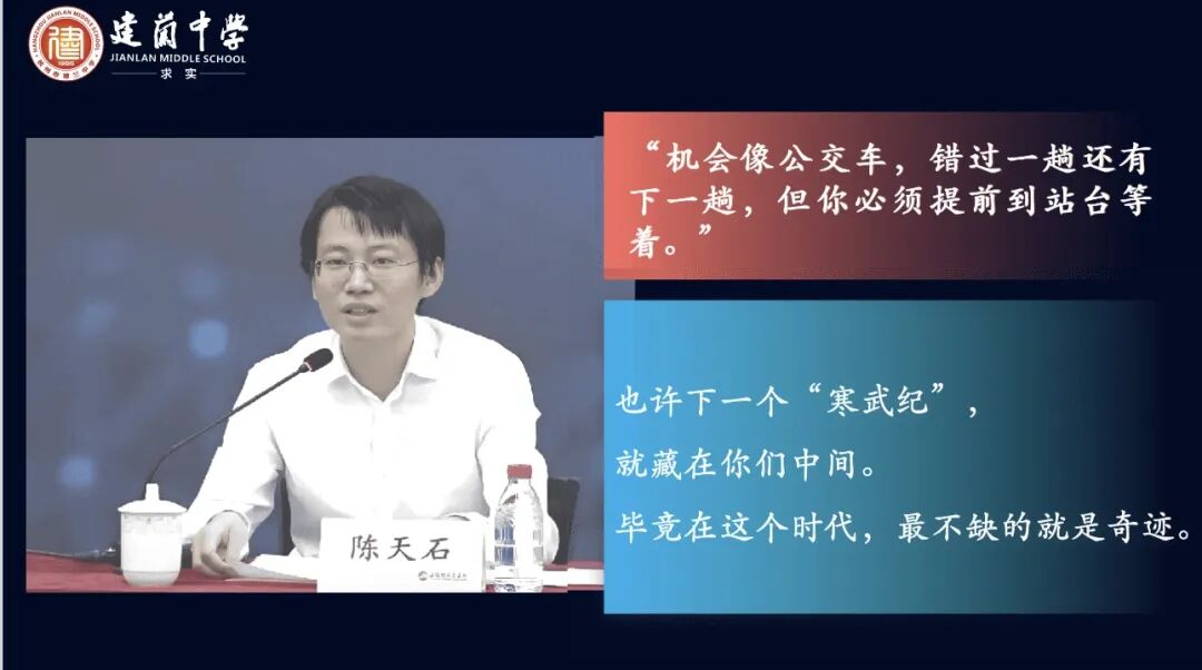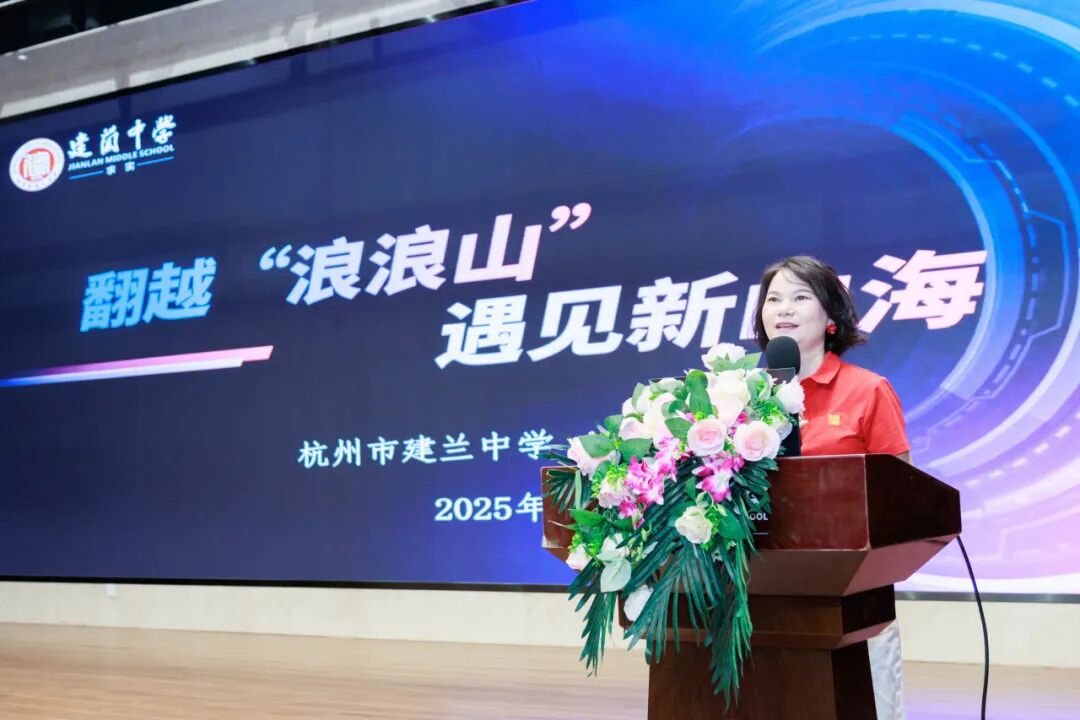 饶书记首先从引发广泛共鸣的“浪浪山”切入,鼓励同学们要正视初三的挑战,翻越自己的“浪浪山”。其意义不在于“逃离”,而在于奋斗过程中锤炼出“翻越”的能力与勇气。她指出,“浪浪山”的本质不是困难,而是塑造我们的熔炉。饶书记还特意为初三学生带来了超级惊喜——中国男篮“最强暑假工”王俊杰的建兰学子打call视频,正如王俊杰所说:“初三是辛苦的,但当你挺过它之后,你会发现你的体能和心态都会上一个全新的台阶。”初三不是最聪明的人成功,而是最坚持的人胜利,坚韧不拔的意志才是翻越“浪浪山”最可靠的登山杖。