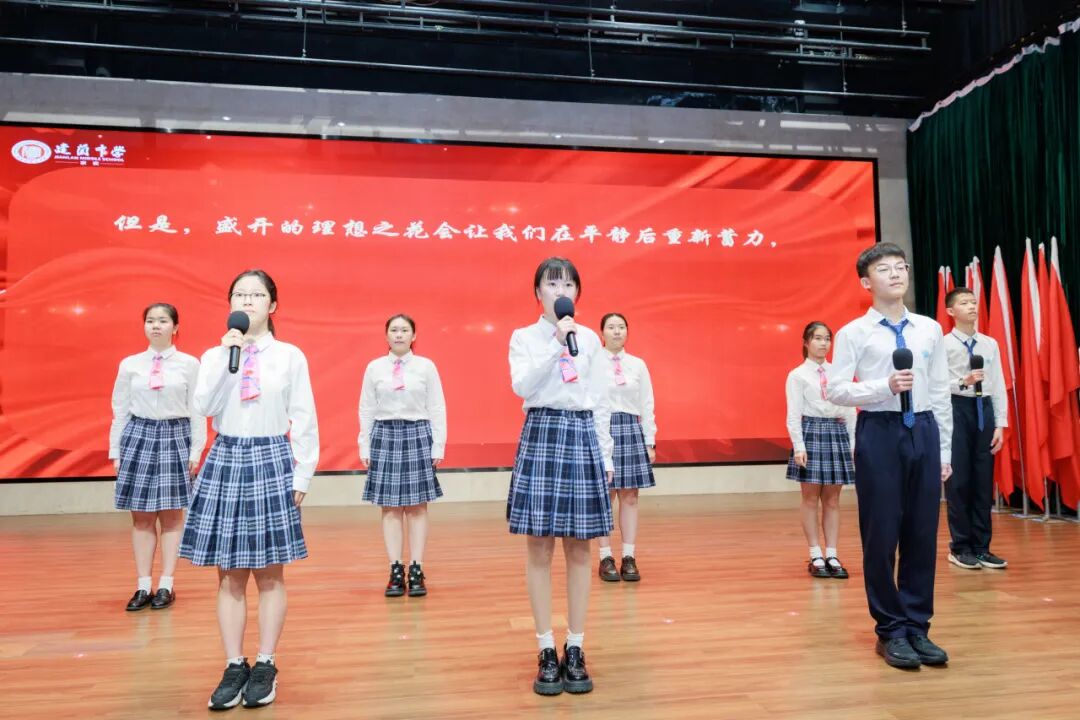 最后,饶书记在总结时特别强调:“九三阅兵是一场展现国威军威、纪念抗战胜利的国家盛典,对于你们初中生而言,它的意义远不止于一场视觉盛宴。”她希望同学们能将这份铭记历史、树立志向、理解责任的家国情怀内化于心、外化于行,以奋斗者的姿态,不负时代,不负韶华。“半山腰总是最拥挤的,我们一定要山顶见!”饶书记的殷切寄语,赢得了全场师生经久不息的掌声。
