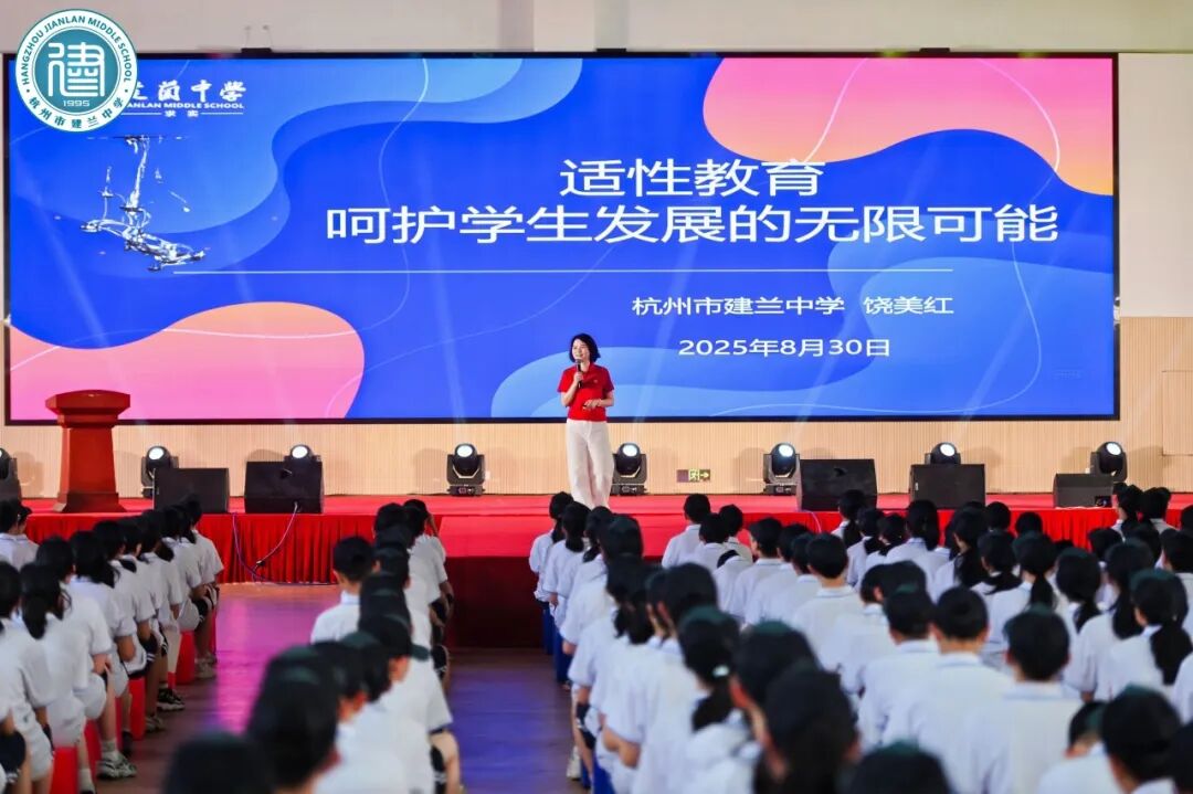 建兰中学集团总校长、党委书记饶美红为兰魂学子讲述建兰文化。饶美红书记用生动的画面和积极的互动讲述着建兰校园里的文化细节,从校牌汉字的书法撰写到门厅朱炳仁的铜雕作品,再从兰池锦鲤到“满则溢”的欹器,还从兰馨图书漂流角到接收建议的学校邮箱......这所坐落于南宋皇城根下的学校,深耕“适性教育”理念,以独具特色的“建兰文化”为土壤,构建起浸润式育人体系。从“兰品如人品”的熏陶到“君子一世”的承诺,建兰中学以兰为媒,让文化成为适性教育的根基,孕育出“一世正气公民、一域博识学者、一代国家栋梁”的育人硕果,在皇城根下书写着“每一个人都有无限可能”的教育篇章。
