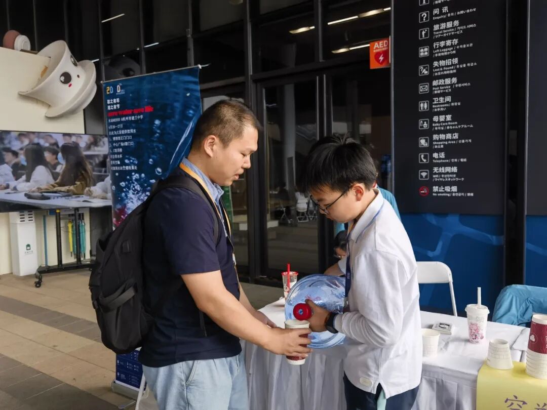 而我们的志愿活动也取得了不错的成效,我们鼓励参会者们自带水杯接取饮用水,并将手中的塑料水瓶在喝尽后放进我们的回收箱里。许多经过水站的参会者们都对我们的理念表现出了浓烈的兴趣。