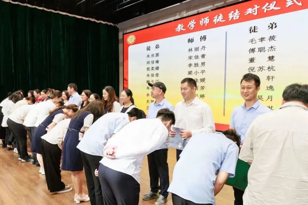 在建兰,有这样的一群人:他们勤勉踏实,传道授业解惑于三尺讲台;他们博学笃行,培才树人引路至桃李天下;他们用言传身教,无私地将建兰人最崇高的精神传递给青年教师。师徒结对,徒弟们隆重的三鞠躬,代表着他们将向师父学师德,学教学,学感恩,享受成长,享受教育。方毅一行领导与建兰师徒们合影留念,他希望年轻教育工作者能以培养堪当民族复兴大任的时代新人为己任,争做“四有”好老师和“四个引路人”,呵护学生全面成长。