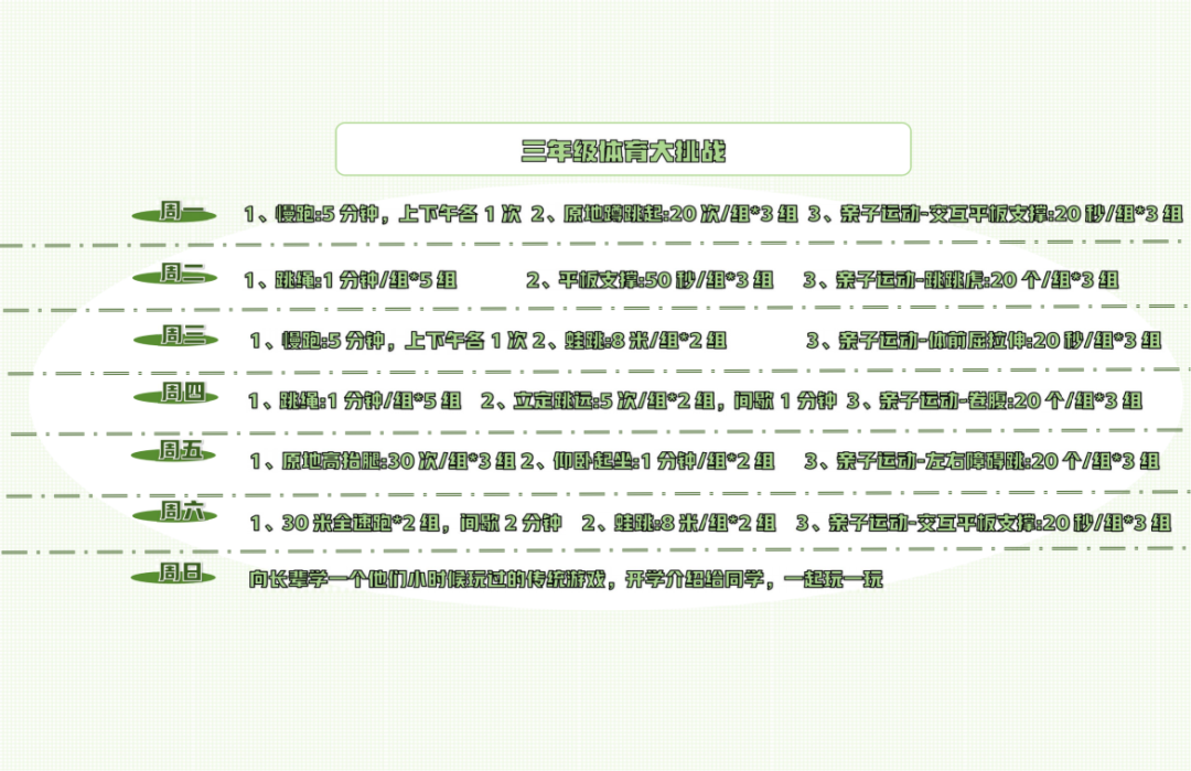可以拍照打卡记录,将照片或视频发至班级群,让我们一起见证你成为一位有毅力的健身小达人!